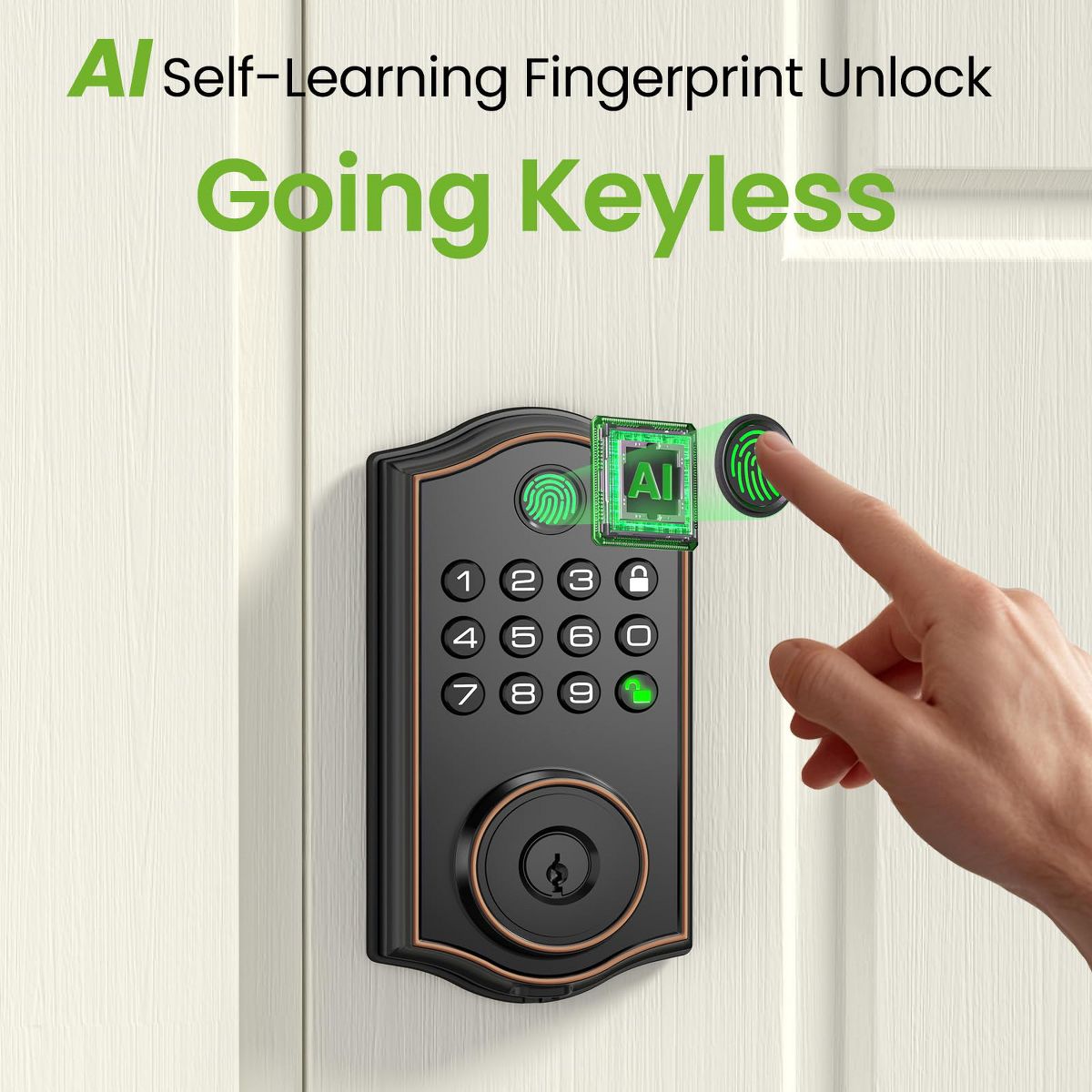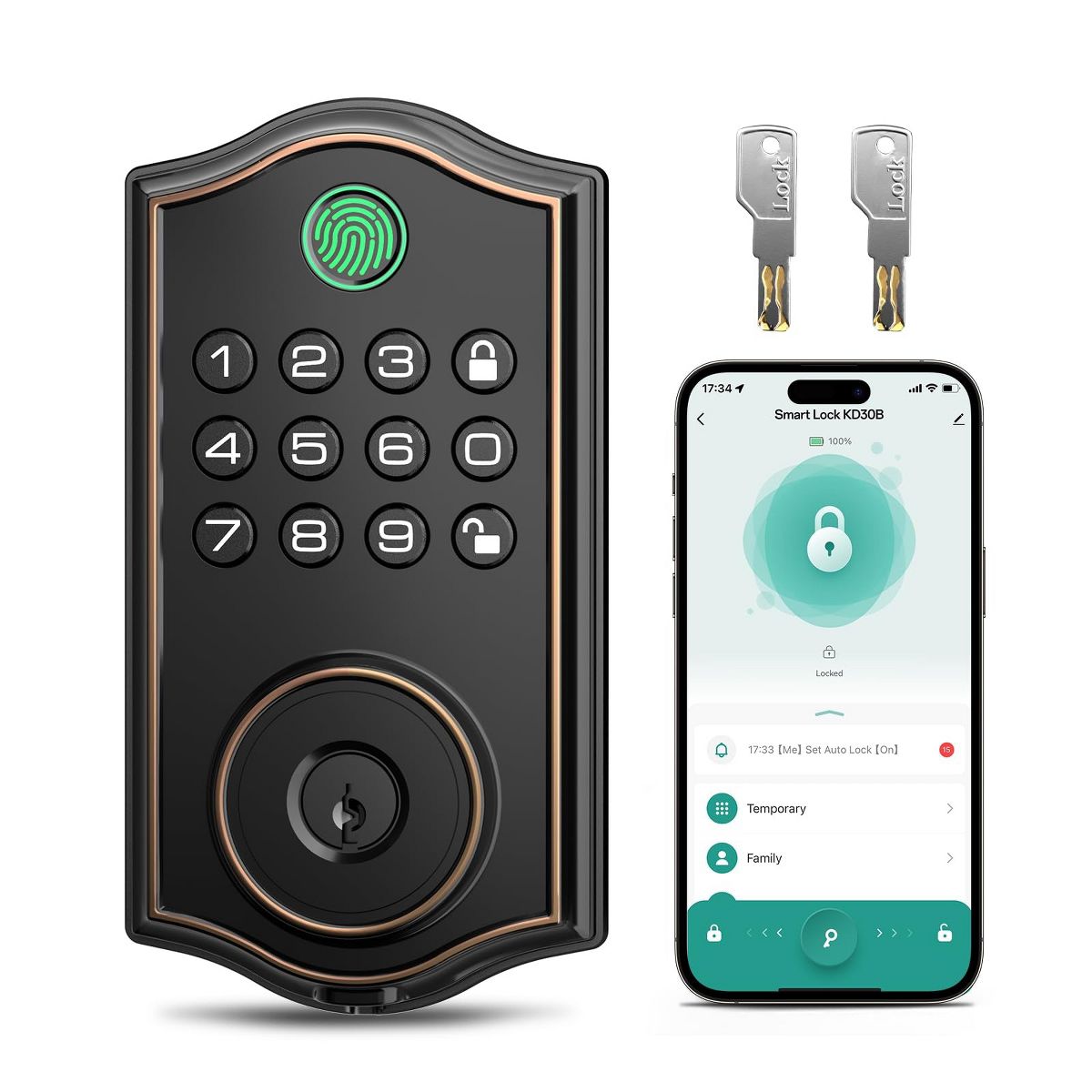 Discover the ultimate smart deadbolt lock for your front door. Crafted from Zn - Al - Cu alloy, this keyless entry lock offers multiple unlocking methods, including 50 fingerprints, 50 PIN codes, temporary passwords, one - time passwords, App access, and 2 keys. Its advanced 3D fingerprint technology ensures rapid 0.2 - second unlocking and blocks fake fingerprints. The temporary password feature is a game - changer for short - term rentals and property management. You can set it to auto - lock within 1 - 1800 seconds or use one - touch lock. In case of abnormal opening, an alarm will sound. It operates in a wide temperature range and is IP54 waterproof. Installation is a breeze, taking just minutes with a Phillips screwdriver, and it supports both left and right doors. Whether for your home, Airbnb, apartment, or garage, this lock brings convenience and security to your daily life.