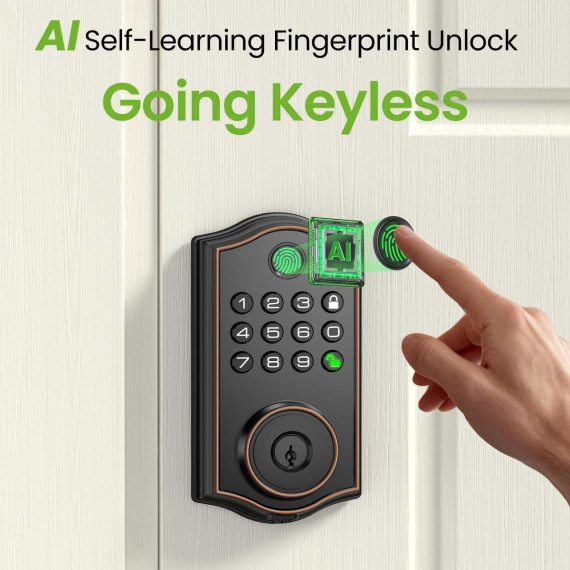 Itopfox Smart Deadbolt Lock for Front Door, Keyless Entry with Keypad, App Remote, Auto Lock, Easy Install, Fingerprint Door Lock for Home, Airbnb