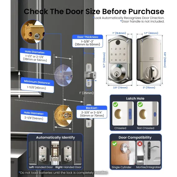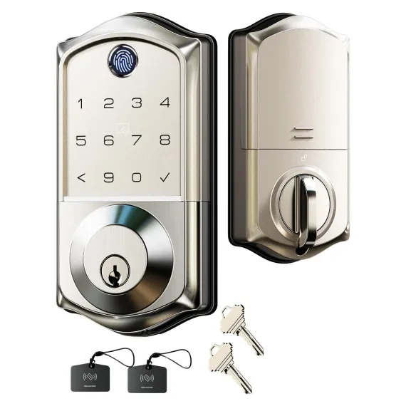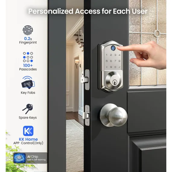 Upgrade your home security with this smart door lock. It features 7 - in - 1 smart access, allowing you to unlock via fingerprint, app, RFID card, and more. With 5 locking methods, it offers great versatility. Smart user management lets you remotely authorize users and view access logs, perfect for multi - tenant properties. It meets high - end security standards and can withstand extreme temperatures. Integrate it with your smart home system for voice control and real - time monitoring. The lock is easy to install, auto - detecting door handedness and requiring only a screwdriver for setup. Say goodbye to keys and hello to a more convenient and secure home life.