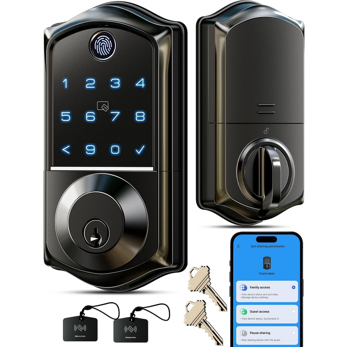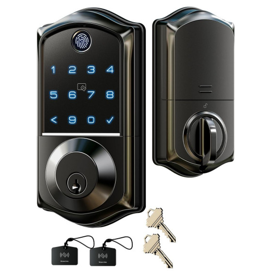 Itopfox Smart Fingerprint Door Lock with App Control, 7-in-1 Keyless Entry, Auto Lock, Emergency Power Port, Touchscreen Keypad, Biometric Lock