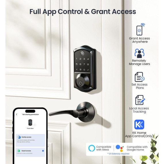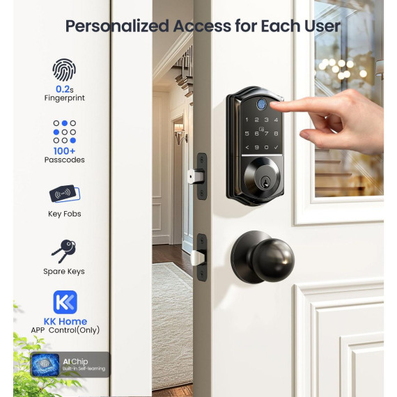 Upgrade your home security with this smart door lock. It features a 7 - in - 1 smart access system, allowing you to unlock via fingerprint, app, RFID card, and more. There are 5 locking methods for versatile use. The smart user management function enables remote authorization and access log viewing, perfect for multi - tenant properties. It meets high - level standards, is waterproof, and can handle extreme temperatures. You can integrate it with smart home devices for voice control and real - time monitoring. Installation is a breeze as it auto - detects door handedness and can be set up with a screwdriver. This keyless entry lock with an electronic touchscreen keypad eliminates the need for keys, bringing more convenience to your daily life.