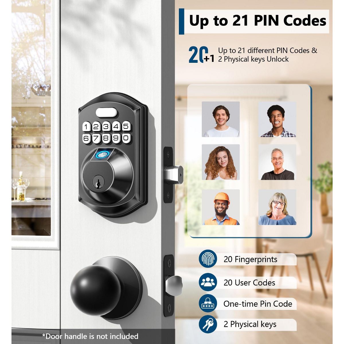Itopfox Smart Fingerprint Door Lock with Keyless Entry, Electronic Keypad Deadbolt, Auto Lock Feature, Easy Installation in Matte Black Finish