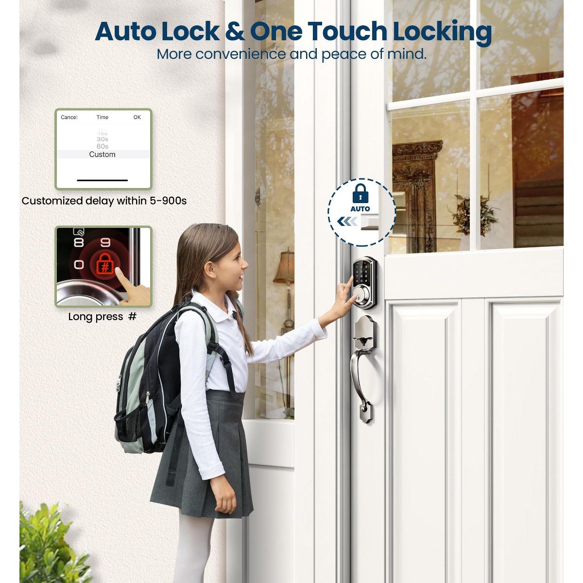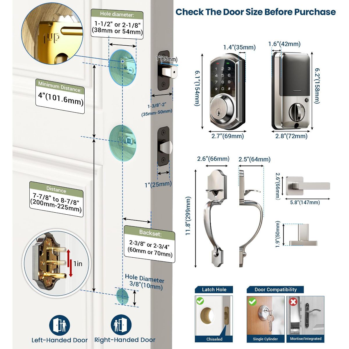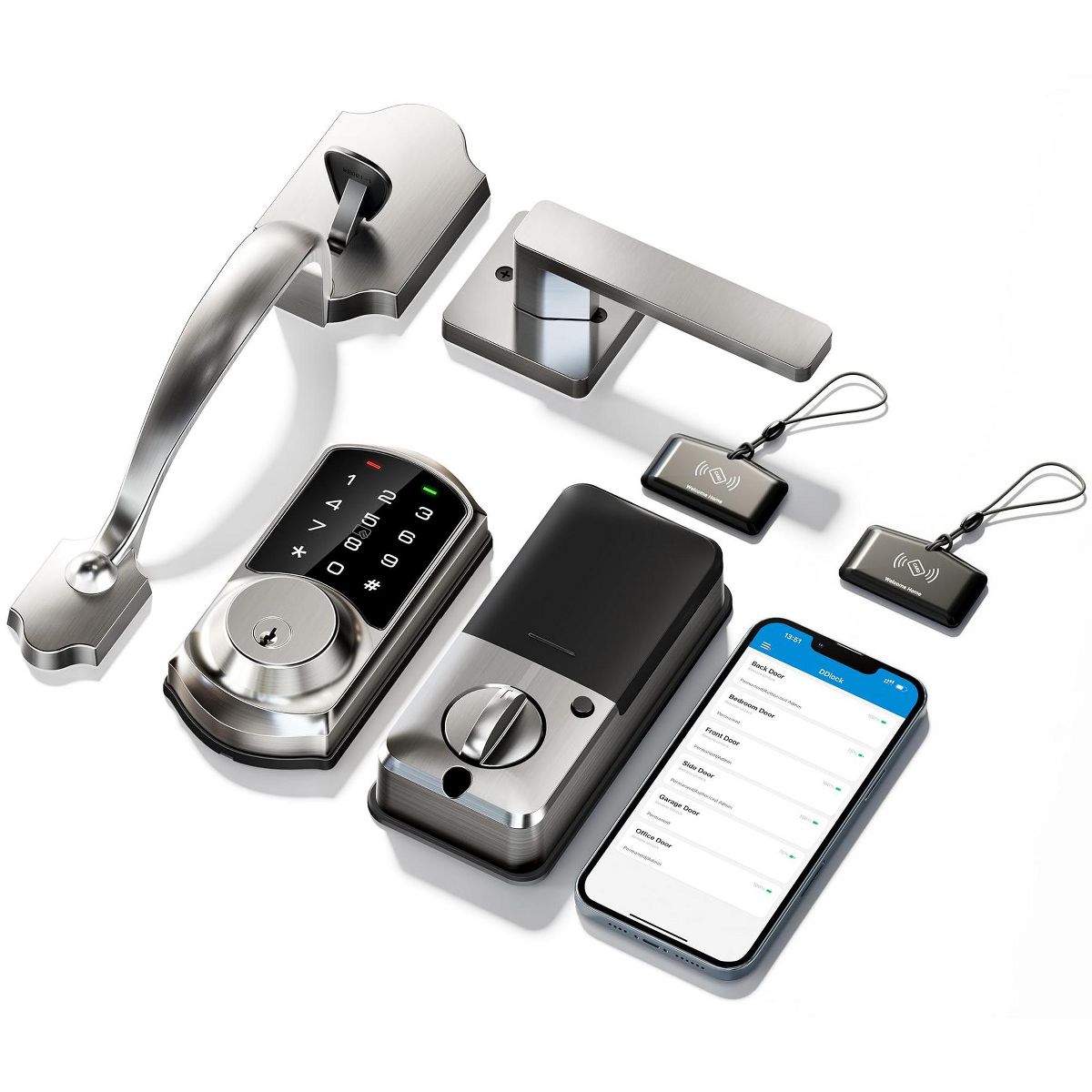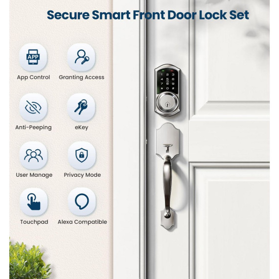Itopfox Smart Front Door Lock Set with App Control, Keyless Entry Deadbolt & Lever Handle, Digital Touchscreen Keypad, Auto Lock, Easy Installation