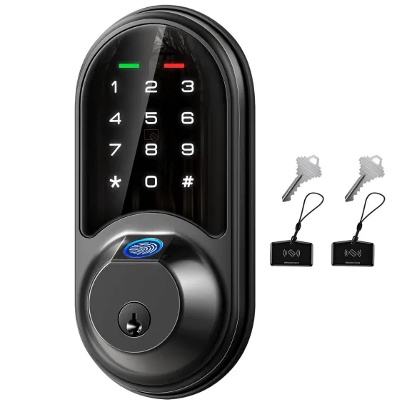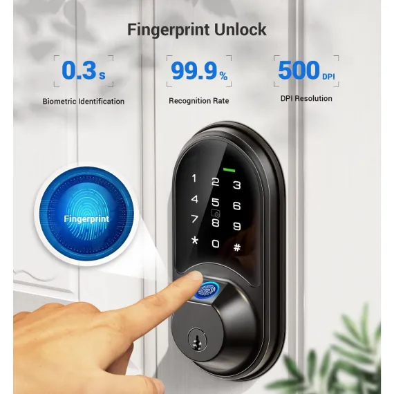 Itopfox Smart Lock, 7-in-1 Keyless Entry with Fingerprint, App Control, Touchscreen Keypad, Electronic Deadbolt for Front Door, Matte Black