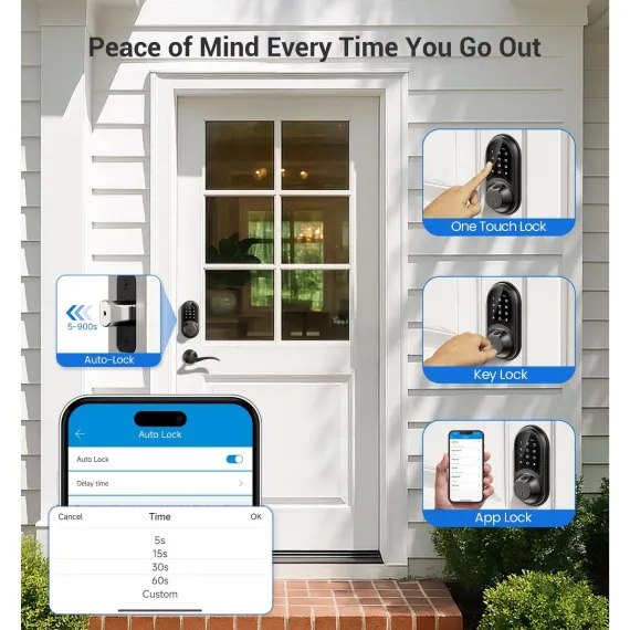 Upgrade your home security with this 7 - in - 1 smart door lock. Offering multiple access methods including fingerprint, app, web portal, fobs, code, eKey sharing, and mechanical key, it provides great convenience. The app and web portal control allow you to manage access remotely, generate eKeys, and view records for free. With a capacity for 50 fingerprints and 250+ user codes, you can share different types of codes with various users. It features enhanced security with auto - lock, privacy mode, and an anti - peeping keypad. Smart home integration enables voice control with Alexa and Google Home when paired with a separate gateway. Suitable for houses, apartments, offices, and hotels, it fits most US standard doors and can be installed easily with a screwdriver, bringing a new level of convenience and security to your life.