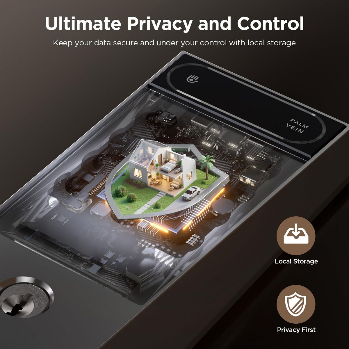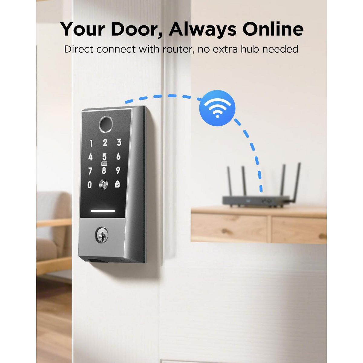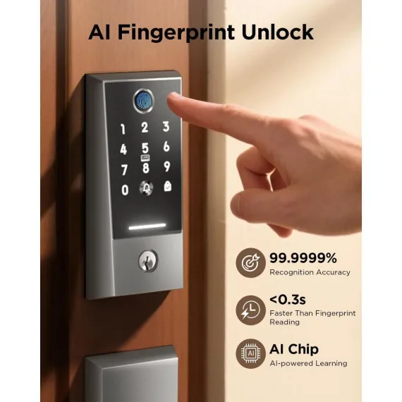 Upgrade your home security with this smart lock! It features advanced AI fingerprint recognition, unlocking in under 0.3 seconds. The self - learning algorithm adapts to different fingerprint conditions, ensuring quick access for everyone. The built - in doorbell lets you see and unlock visitors from your phone anywhere. It has true hub - free WiFi connectivity, directly connecting to your home network without extra devices. You can use voice commands with Amazon Alexa and Google Assistant for hands - free operation, and set an auto - lock delay from 5 to 900 seconds. With an IP55 rating, it's robust and weatherproof, reliable in all conditions. Ideal for families, Airbnb hosts, and frequent travelers, it offers temporary access, secure self - check - in, and remote monitoring, bringing convenience and peace of mind to your daily life.