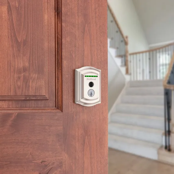 Kwikset Halo Touch Traditional Fingerprint Smart Door Lock in Satin Nickel