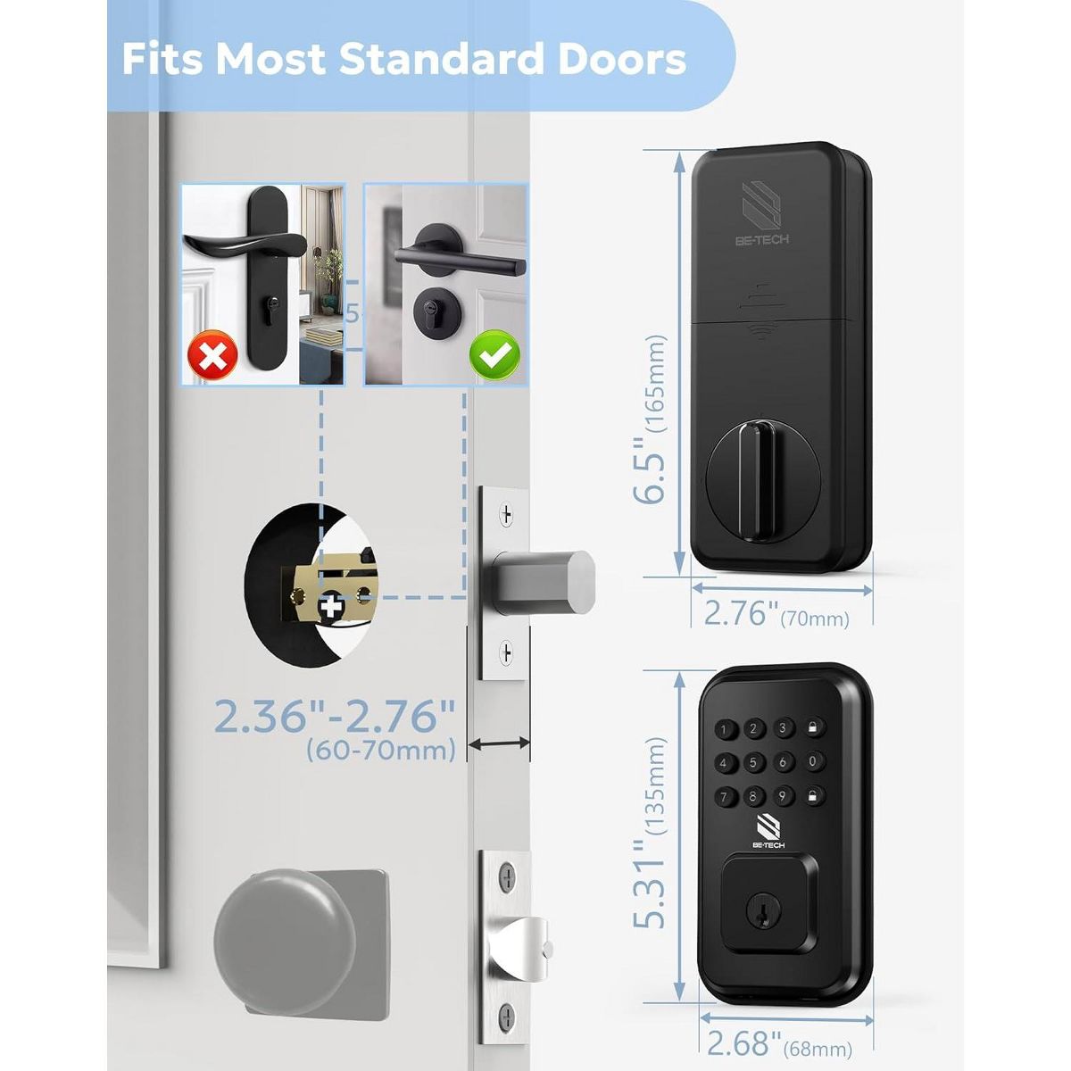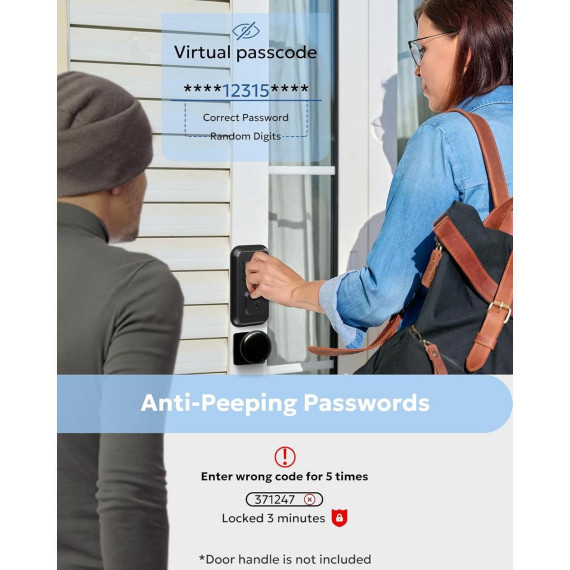 Upgrade your home security with this keyless keypad door lock, designed for everyday convenience and reliable protection. The illuminated keypad allows quick, secure entry without traditional keys, while two included backup keys offer added peace of mind. With auto-lock functionality, the door locks automatically after a preset time, and one-touch locking lets you secure your home instantly when leaving. Crafted with a durable zinc alloy housing and a high-security digital deadbolt, this lock is built for long-lasting performance. Easy to install on most standard doors with no professional tools required, it’s a sleek and practical black door lock solution for front doors, apartments, offices, and rental properties.