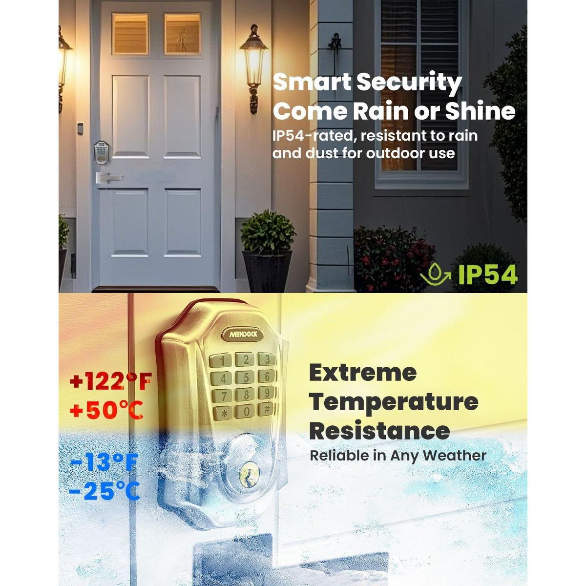 Upgrade your home security with the UF01 GreenShield keyless-entry smart lock featuring smartphone control, touch keypad access, auto-lock within 0–30 seconds, and ANSI-grade durability built to withstand over 100,000 uses.