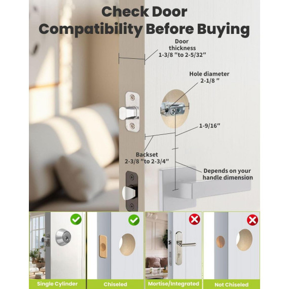 ZACHVO Keyless-Entry Wi-Fi Deadbolt Smart Lock with Fingerprint, Keypad, Key Fob, Smartphone App Control, Auto-Lock, IP56 Waterproof, Satin Nickel