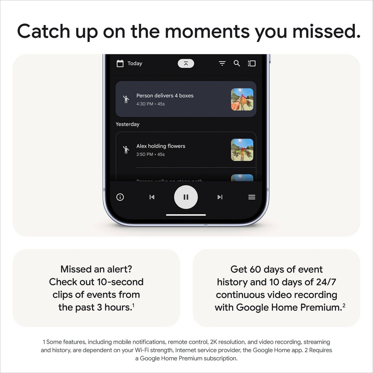 3 Requires Google Home Premium Advanced plan (sold separately), Google Home app, Wi-Fi, and internet connection. Features subject to change; available in select countries and languages. Gemini features work independently of Gemini apps. Check responses for accuracy; results may vary.