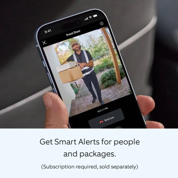See what’s up and spot deliveries down low, all from your phone. With Battery Doorbell, your front door shows more with Head-to-Toe Video. And knows more with Smart Alerts that recognize both people and packages (subscription required, sold separately)—helping you take action in the moment.