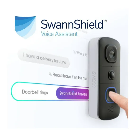 Introducing Swann EVO Wireless Video Doorbell with portable indoor chime – it’s your ultimate front door companion. The HD camera with a wide 140° viewing angle captures HD color video in ambient light with powerful night vision in B&W. With the EVO Video Doorbell you get reliable alerts, 2-way audio & flexibility to add a MicroSD Card to save recorded clips for free. Power up the doorbell using built-in 5200mAh rechargeable battery or hardwire it. Use the free SwannShield AI Voice Assistant for added protection to talk with visitors when you can't or are away from home.