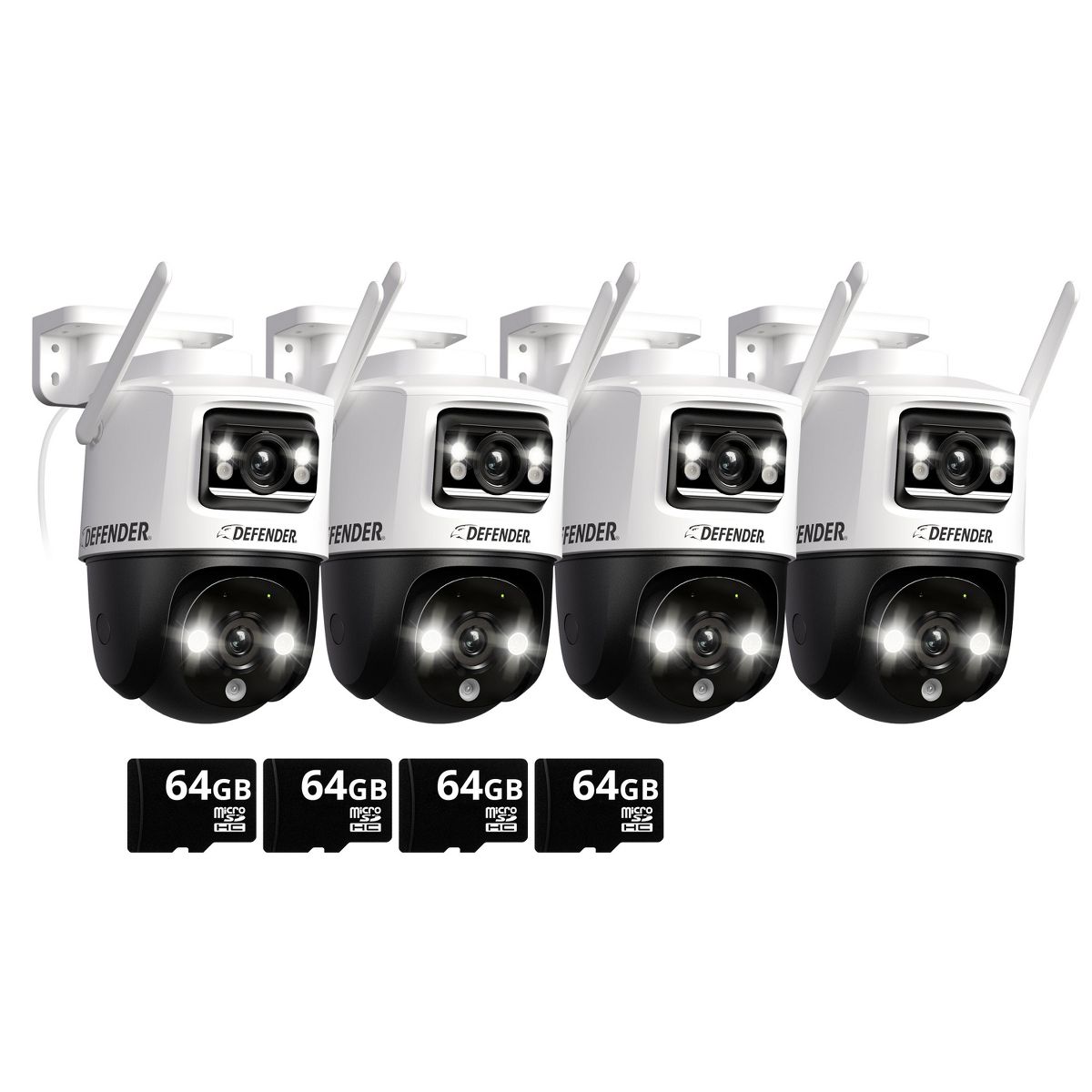 AI POWERED Guard Pro 3K PLUS Dual Lens PTZ Wi-Fi 6 Plug-in Security Camera with 64GB SD Card, 4 Pack