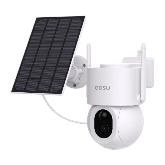 aosu 3K 5.0-MP Wi-Fi® Outdoor AI-Smart Solar Security Camera with Panoramic PTZ, Auto-Tracking, Enhanced Detection, and 2-Way Talk, C9S2CH11 in White