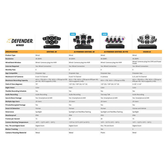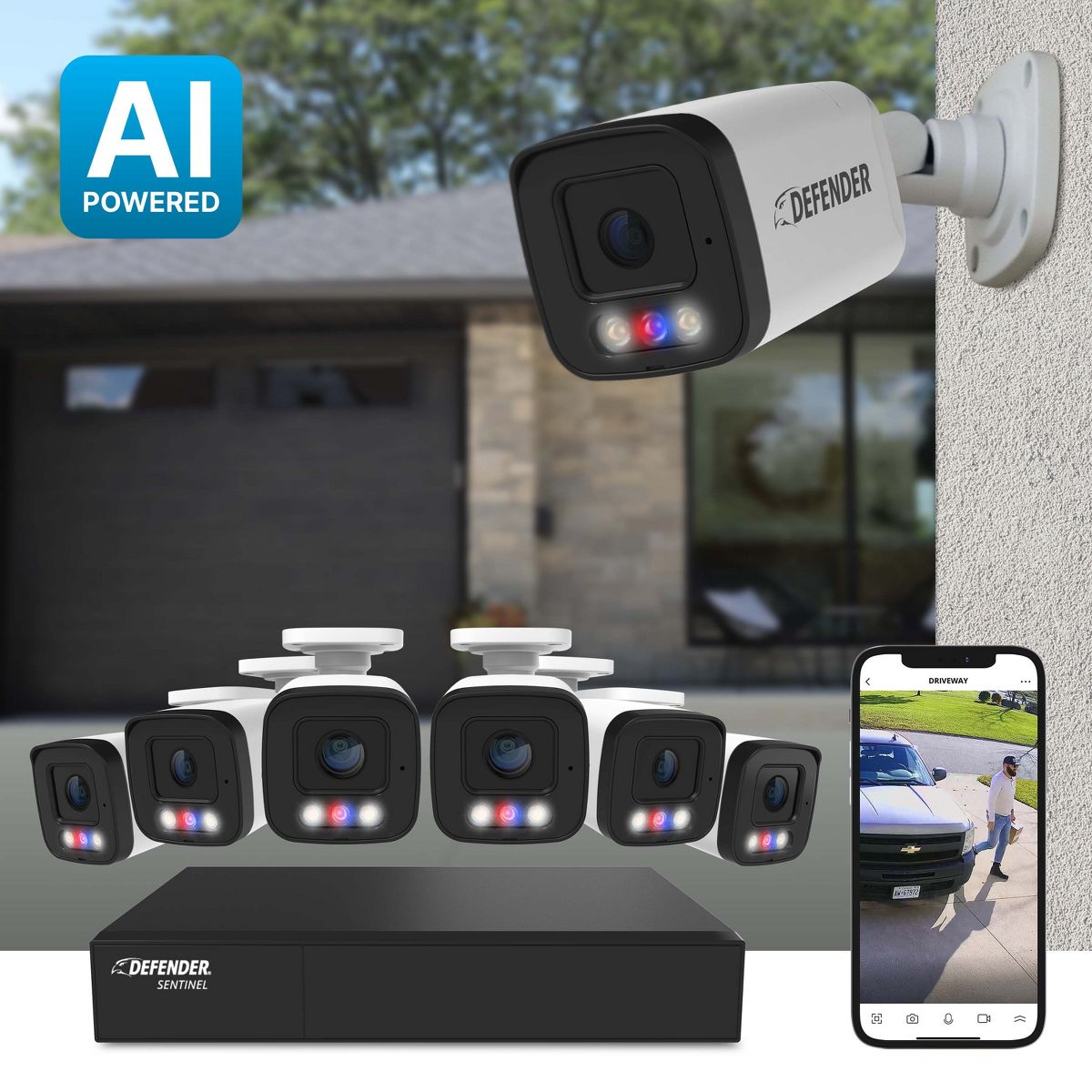 Defender AI POWERED Sentinel 4K Ultra HD Wired 8 Channel PoE NVR Security System, 1TB HDD & 6 Metal Cameras