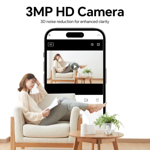The hoco D1 Indoor HD Camera is an advanced indoor camera that delivers high-quality monitoring with a full suite of smart features. Equipped with a 3-megapixel full HD sensor (2304 × 1296), it offers sharp image quality and a complete pan-tilt-zoom (PTZ) range for dynamic coverage. The double gimbal design enables a wide 355° horizontal and 110° vertical viewing angle, ensuring no blind spots in your space. Infrared night vision and two-way audio allow seamless day-to-night monitoring and real-time communication. With support for iOS and Android devices, remote access and fast network setup are simple and secure. Whether for home or office use, this compact camera provides reliable surveillance and flexible storage options