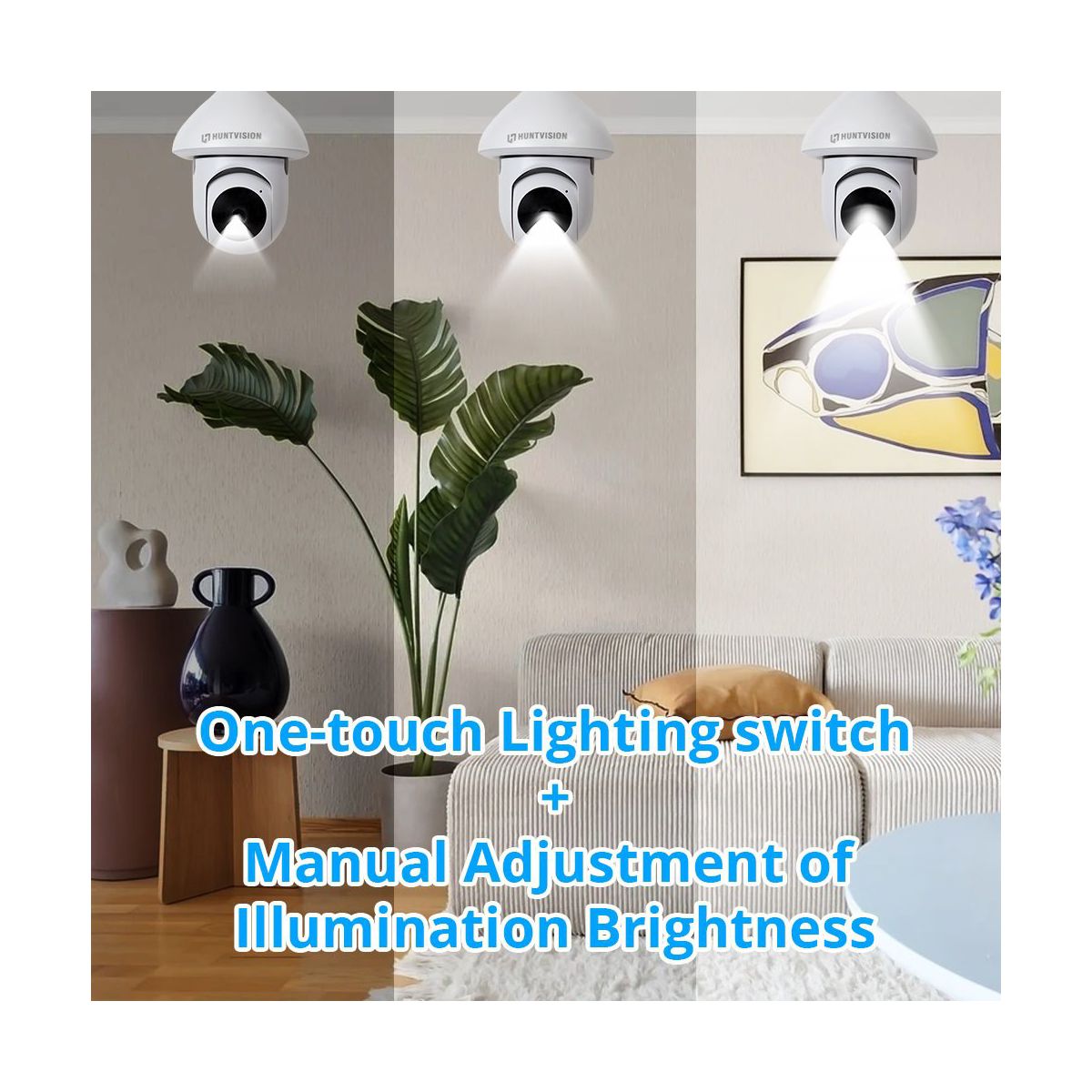 HUNTVISION-E3-LT 3MP Indoor WiFi Light Bulb Camera offers high-definition surveillance with easy installation. Compatible with Ivy Smart APP, it supports 2.4G WiFi and Bluetooth for stable connectivity. Features include Day and Night Mode, accurate Human Detection and Tracking, making it an ideal smart security solution for homes and offices with discreet and reliable monitoring capabilities.