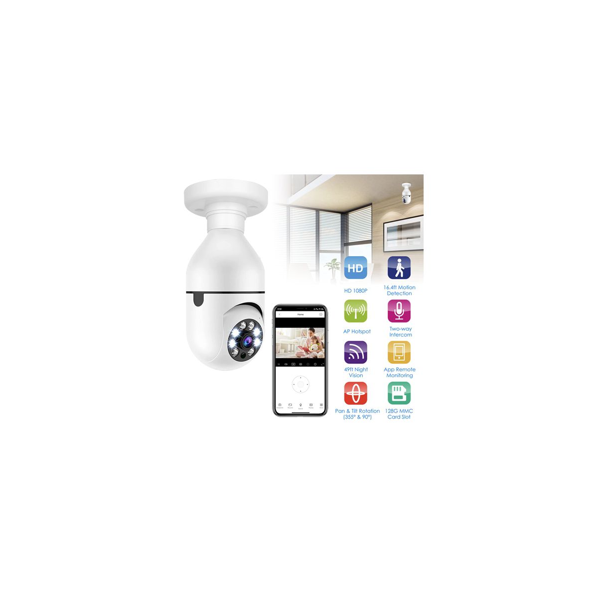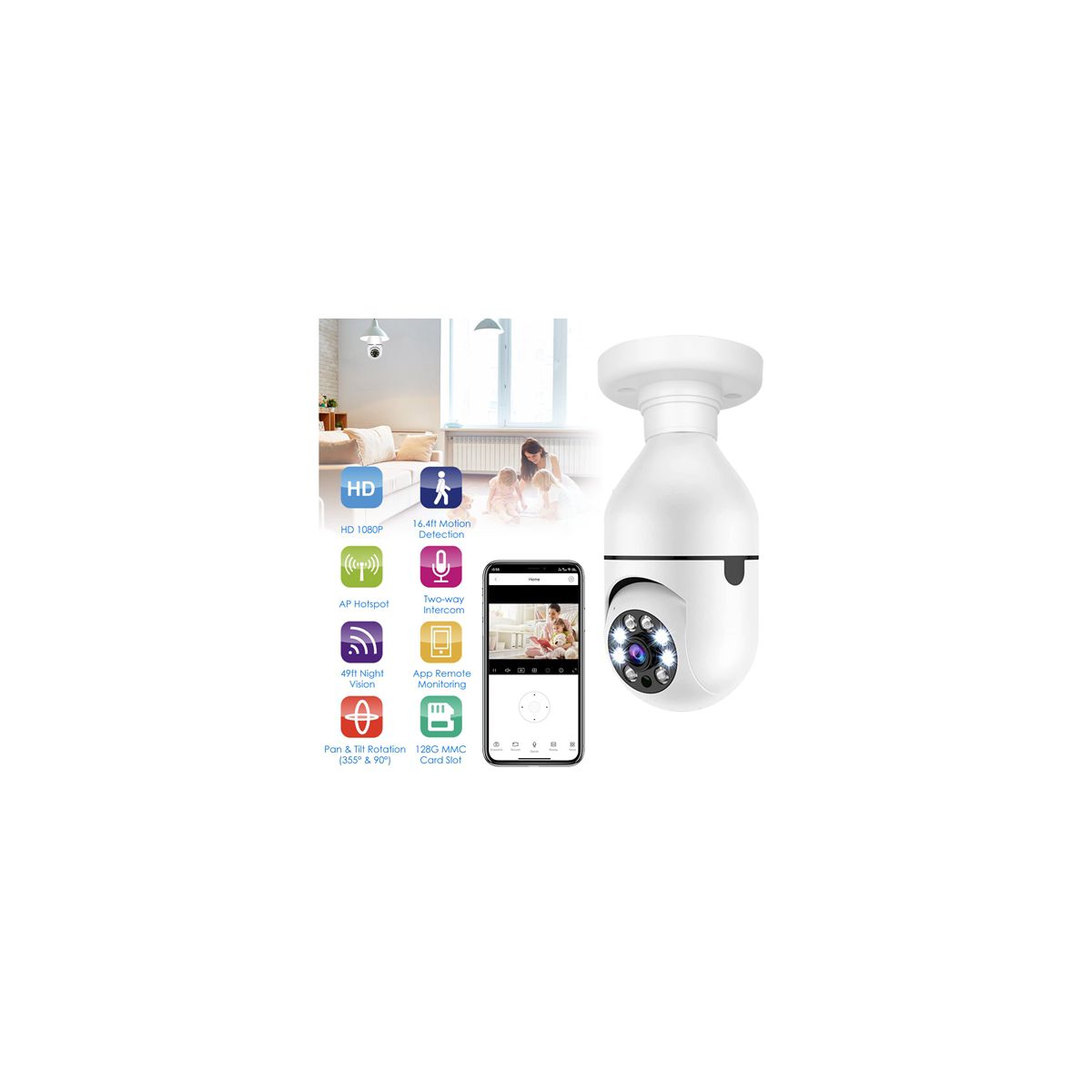 Package Includes: WiFi Bulb Camera, E27 socket base, screws, user manual