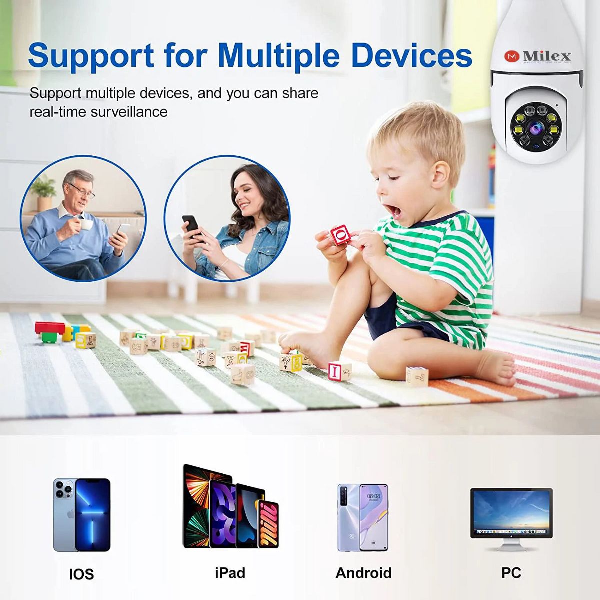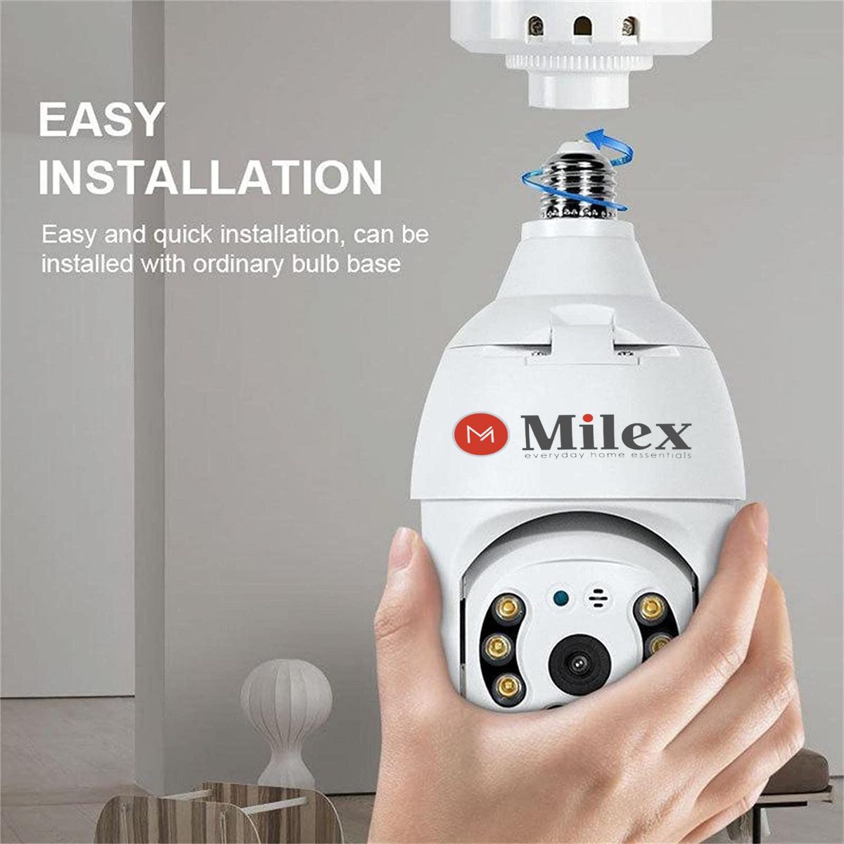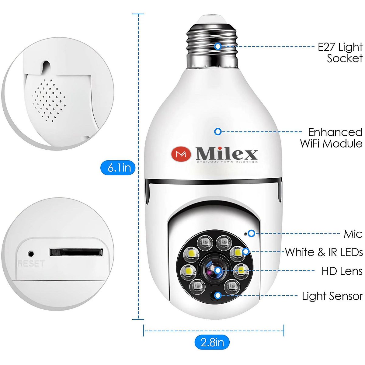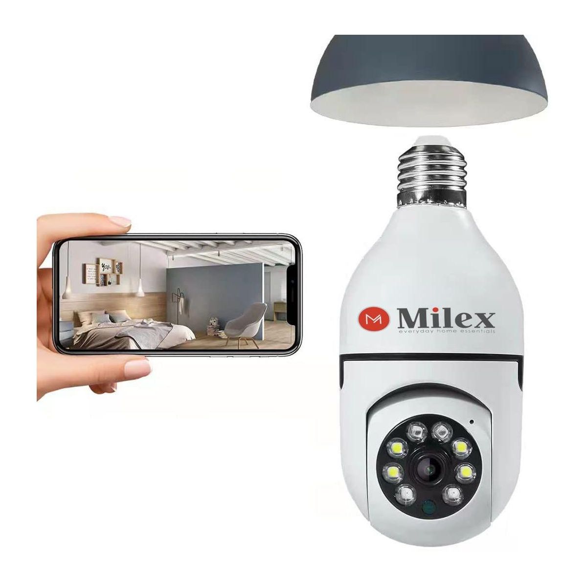 Milex Light Bulb Security Camera – 360° Panoramic WiFi Camera with LED Light & Motion Detection