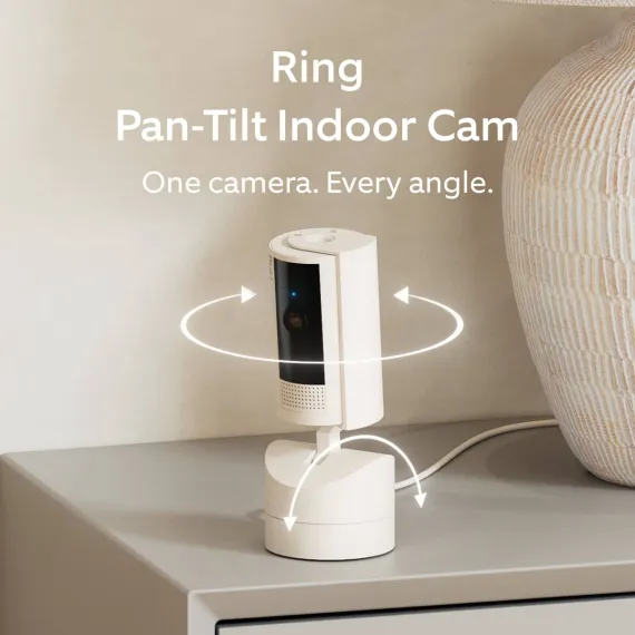 Ring Pan-Tilt Indoor Cam with 360° Horizontal Pan Coverage, Live View, Two-Way Talk, HD Video - White