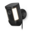 I love this Ring Spotlight Cam Pro plug in for that reason!! it plugs in!! i had another camera system that was rechargeable but i found that i never got aroud to recharging it so it didnt work for me. I didnt want to stand on something, unscrew it..charge it and put it back over and over. This camera plugged in..set up with my phone, I adjusted the angle i wanted it to cover and job done!! ...and i have never had to touch it again. It just works perfectly every single day! I have an outdoor plug right under where i installed it so it worked out great and the cord just blends into my white woodwork. Installation was simple and all the hardware was included for various types of intallations. This sytem does it all!! it connects to an app on my phone for easy set up. The features i like best are the light and siren that i can turn on from anywhere with the app or are motion activated. I think this is a great deterrant to anyone coming around our property at night. The added benefit is that we always come home to a lit up front door at night so theres no danger of tripping on the stairs or fumbling for the keys. We have a motion activated completely lit up front doorstep every time we need it! The dual light is very bright and covers a wide angle. Theres also a birds eye aerial monitoring viewing angle available so you can see the direction that someone is approaching the house from and there is a privacy feature that lets you block out areas you dont want covered, like your neighbors lawn. The two way sound is really clear so i can talk to anyone at my front door from where ever i am and the color night vision lets me see my entire front door area, front lawn, circular drive and the street in front of my house so i can see anyone approaching my home by car or on foot from any angle. This in tandem with the motion activated light and siren give me a very secure feeling at night and during the day whether im home or away from home. It even comes with a ring security sticker! I think this is the best security camera on the market and i enthusiastically recommend it!!