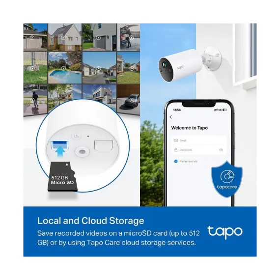 Introducing the TCB82, a smart, wire-free, indoor/outdoor, battery-powered security camera. With its versatile design, you can easily place it on a tabletop or mount it on a wall or ceiling. Experience day and light color live view along with two-way audio, providing comprehensive monitoring capabilities. The wide 125° field of view ensures maximum coverage, while the 2K 3MP resolution delivers high-quality footage. Enjoy up to 6 months of battery life on a single charge, and take advantage of the optional solar panel for continuous power supply. Store your recordings effortlessly with up to 512GB of local storage and the option for Tapo Care Cloud Storage. The TCB82 is equipped with free smart AI detection, accurately identifying people, and sending real-time notifications. Customize the activity zone to focus on the areas that matter most to you. The TCB82 combines convenience and performance to meet all your security needs.
