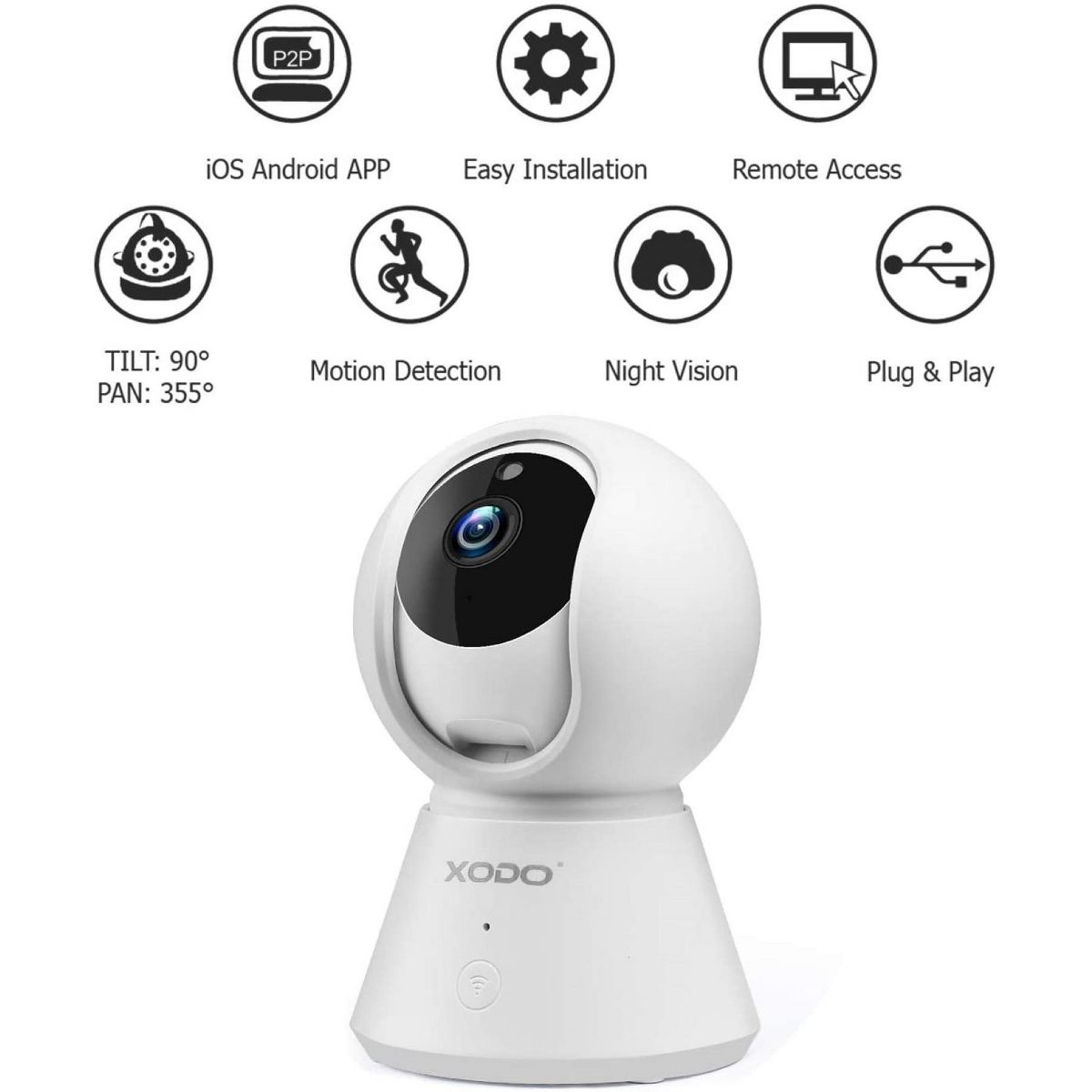 XODO E6 Wireless Security Camera 1080P HD Indoor WiFi Plug-in Cam with 32GB SD Card, Motion Detection, 2-Way Audio, Night Vision