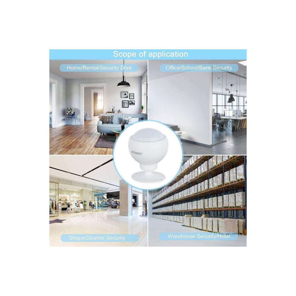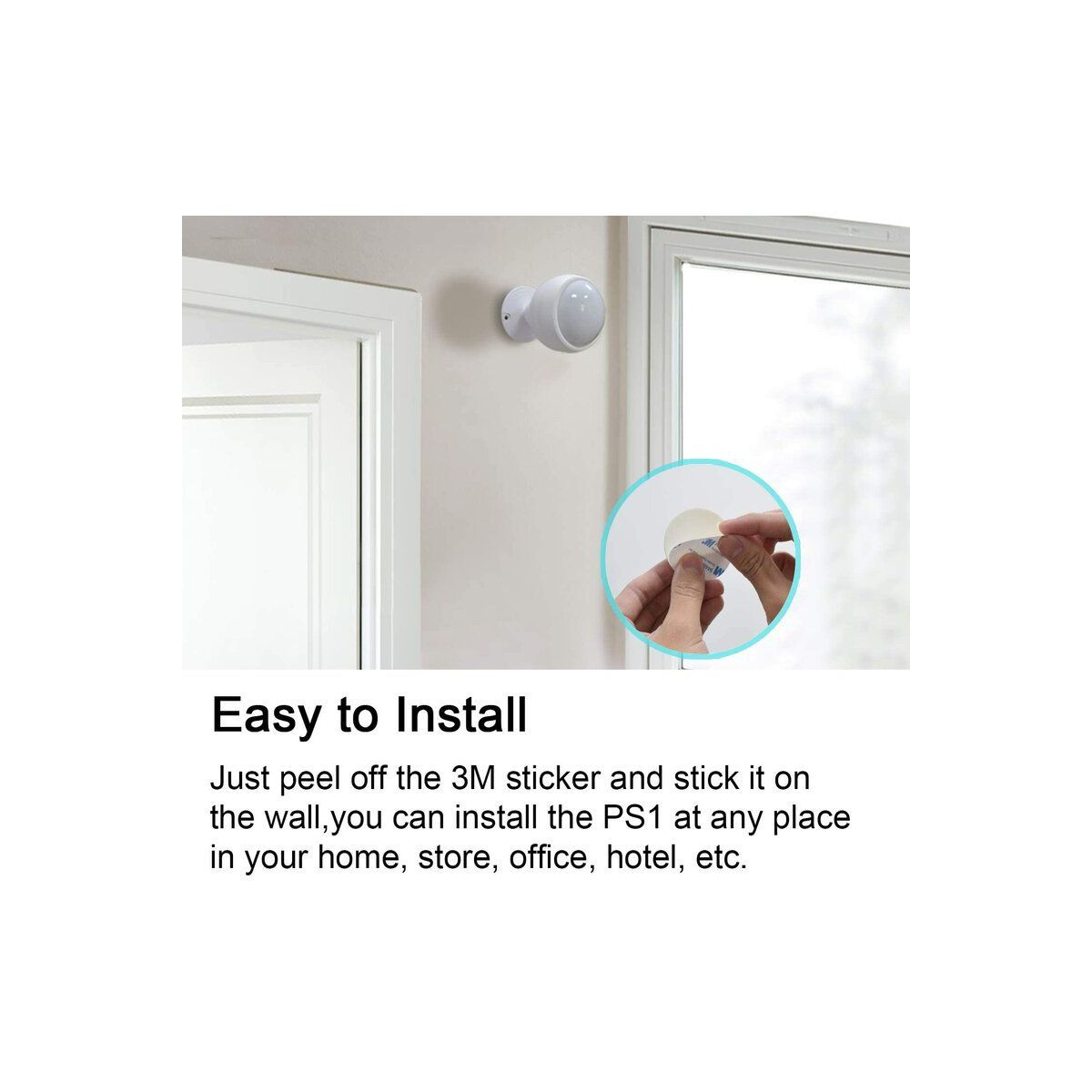 XODO PS1 WiFi LED Motion Sensor, PIR Motion Detector, Wireless 360° Detection, 3M Adhesive Easy Install, Energy Efficient