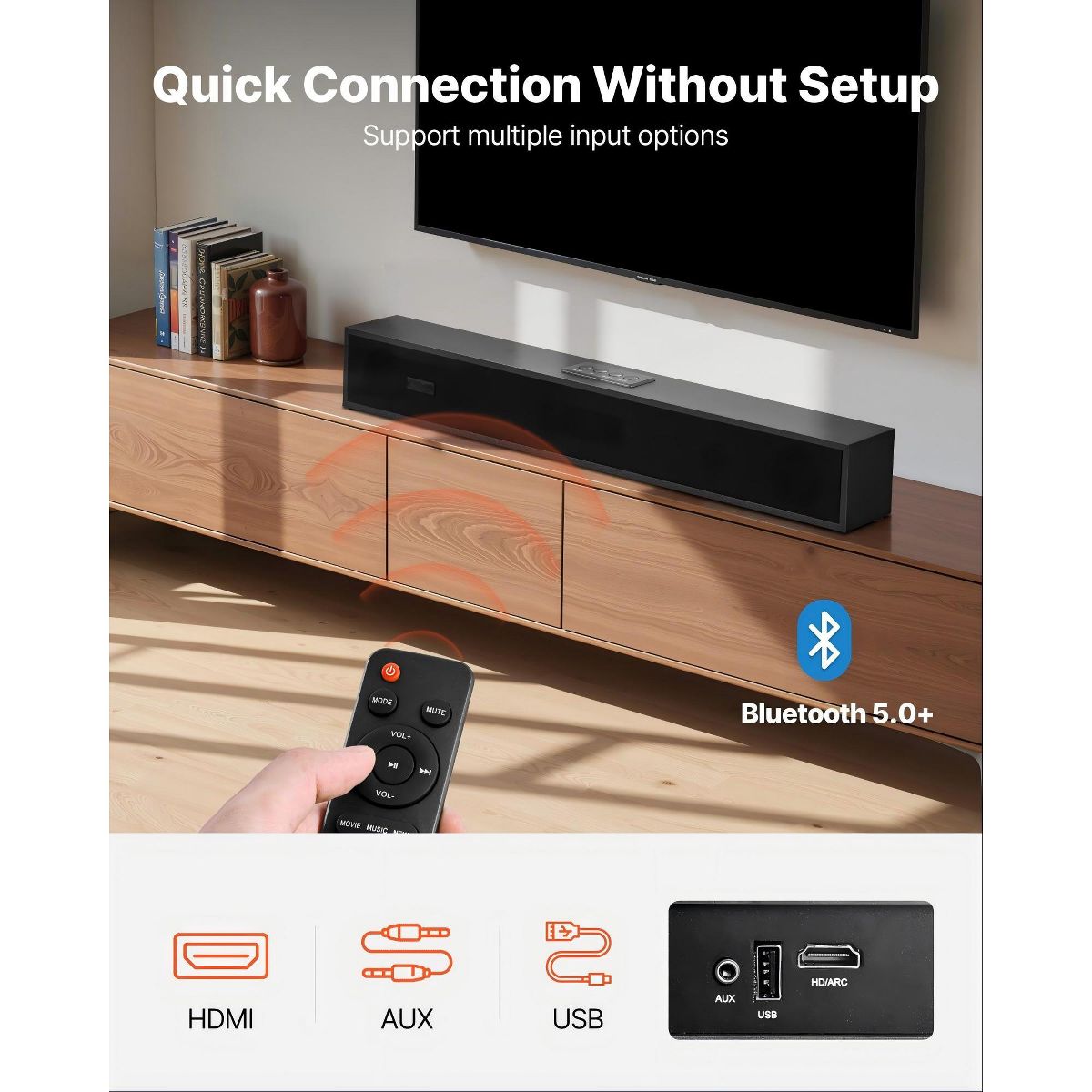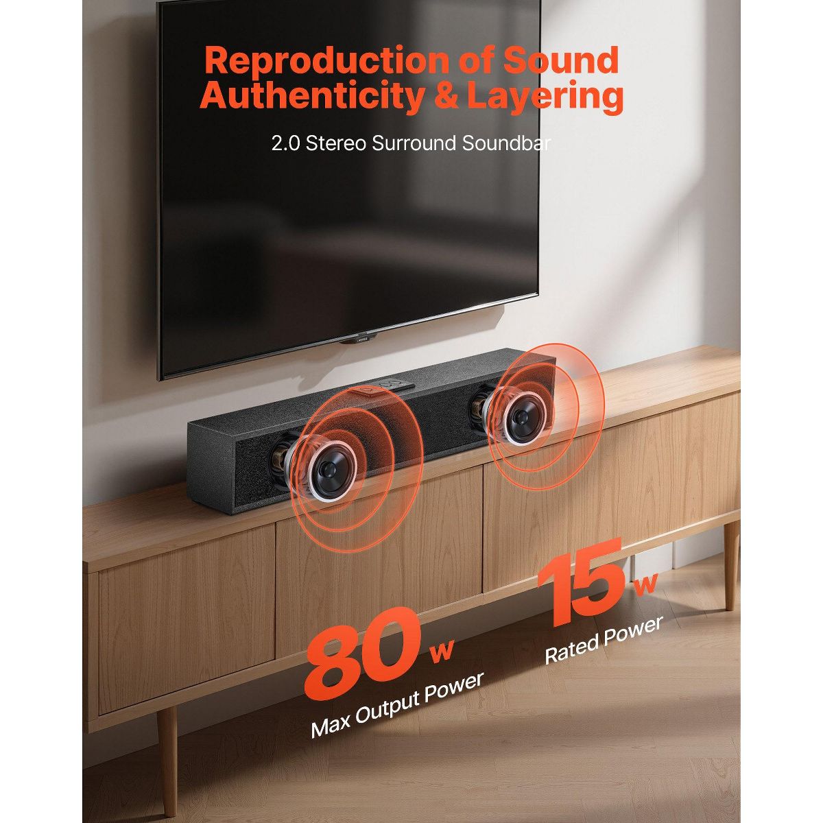 This compact 24-inch sound bar delivers immersive 2.0 channel stereo sound with up to 80W maximum output, enhancing TV, projector, and PC audio. Designed for easy setup, it supports Bluetooth and multiple wired connections, includes a remote control, and offers flexible placement options. Ideal for home theaters, living rooms, and desktops, it upgrades your audio experience without taking up extra space.
