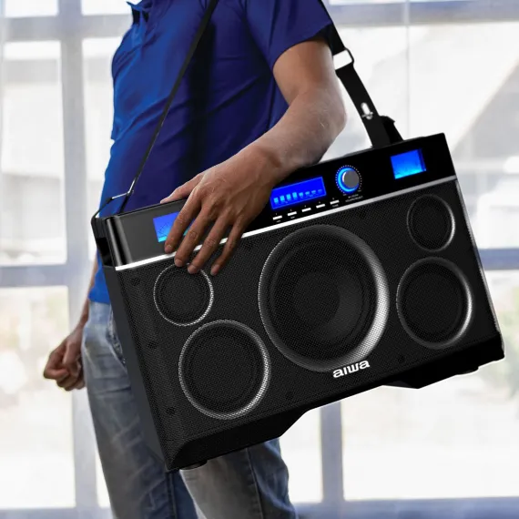 Aiwa Exos-10 Bluetooth Stereo Speaker With Lcd Display & Carry Strap Included, Ideal For Outdoor & Indoor Adventures
