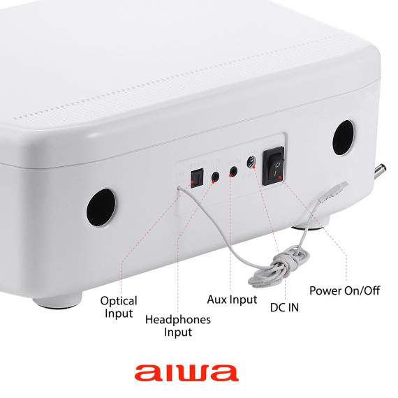Upgrade your bedroom with the Aiwa Exos Home Bedroom Speaker! There is nothing worse then getting one of those high quality TVs with a subpar sound system, and this solves that problem easily. With an optical digital input (for TVs specifically) we designed our speaker to emit powerful sound within a sleek, home-friendly design. It can go anywhere, and even has a LED digital clock with adjustable brightness. Our speaker can also play CDs and even functions as an FM radio, giving it added utility that the other speakers do not have. Get the Aiwa Exos Home Bedroom Speaker today!