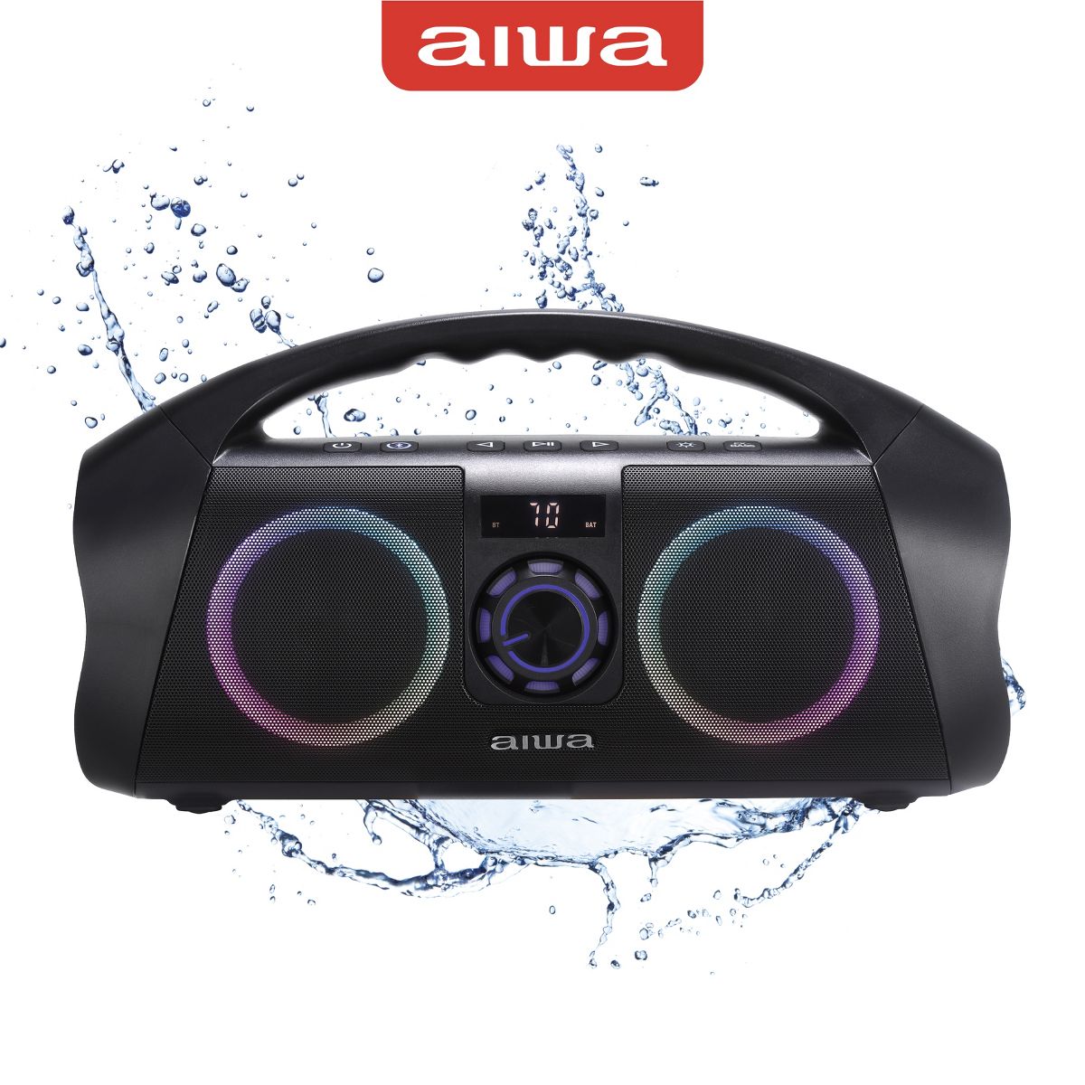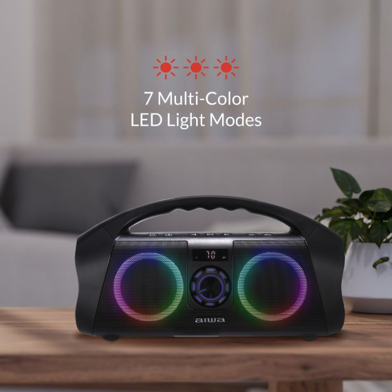 Aiwa Portable Bluetooth Boombox Speaker IPX7 Waterproof with Multi Color LED Lighting and Digital Display