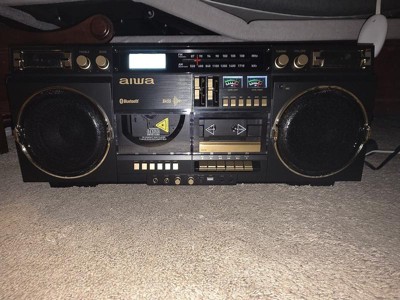Designed for convenience and style, this boombox with CD and cassette player