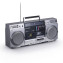 karaoke sessions or announcements. The boombox is equipped with a built-in