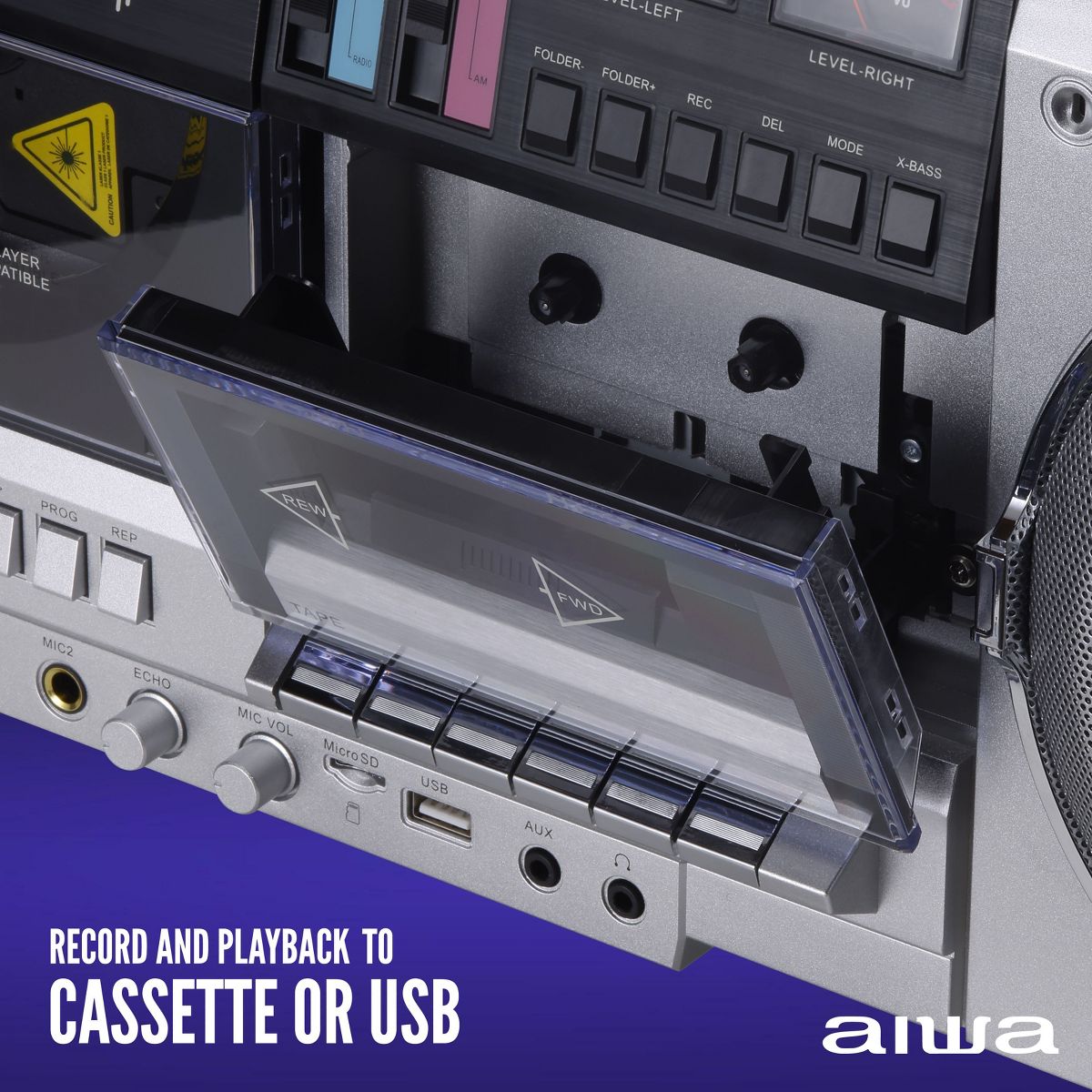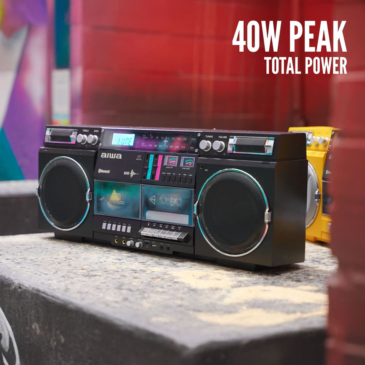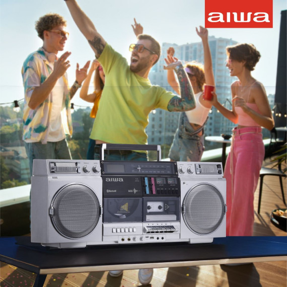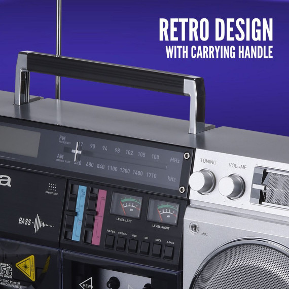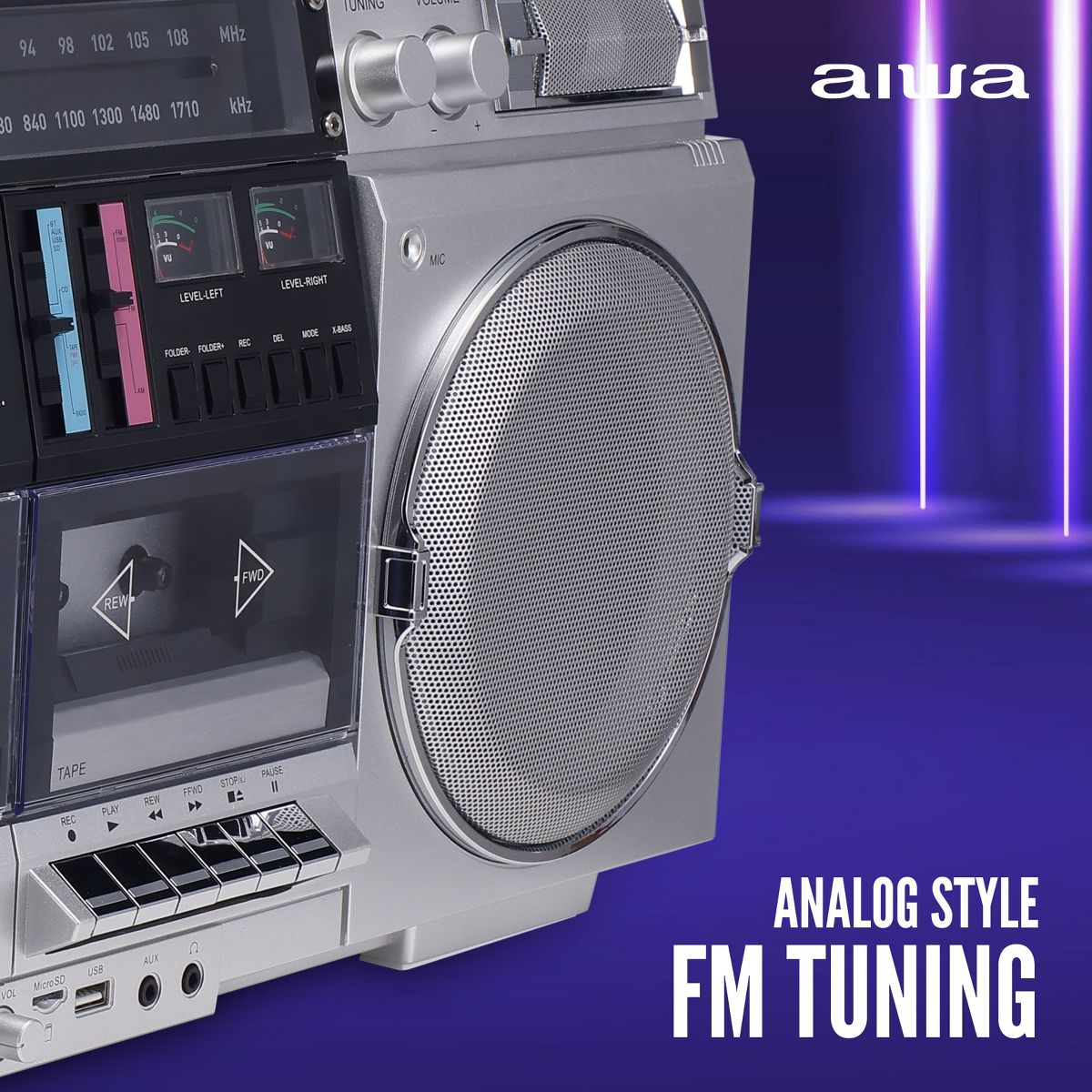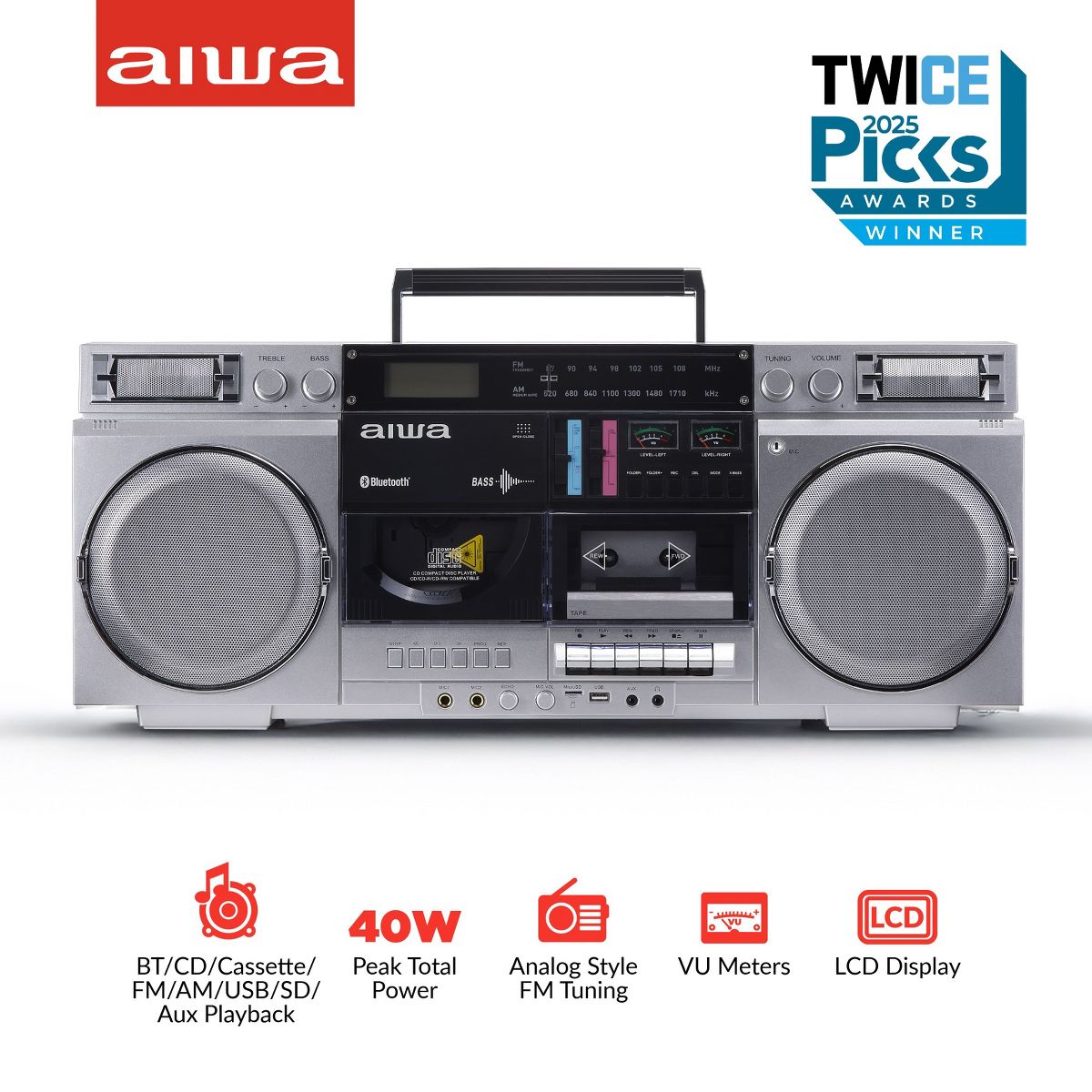 aiwa Retro Boombox CD Player with Cassette Recording, Bluetooth 5.0, VU Meters, LCD Display, Dual 40W Speakers