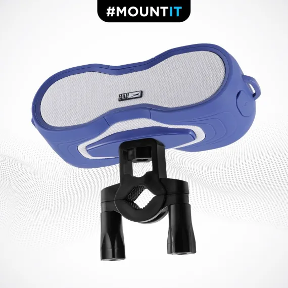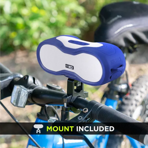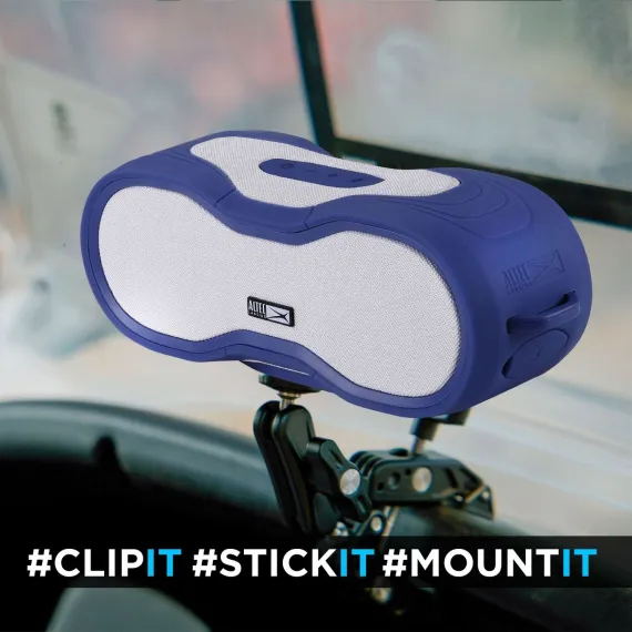 includes a carabiner clip for easy transport, along with a built-in speaker mount for