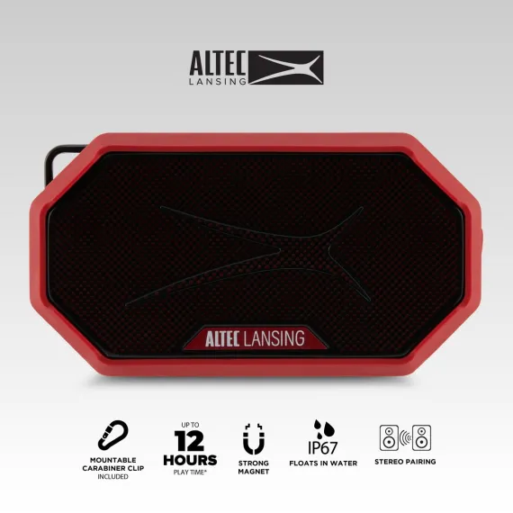 Experience unparalleled audio quality wherever you go with the ALTEC LANSING HYDRAMINI 2.0 Portable Bluetooth Speaker. Engineered as a part of the HYDRAMINI series, this magnetic Bluetooth speaker boasts an impressive 8W RMS output power and 2" Neo full-range drivers, ensuring every note is delivered with precision and clarity. Designed to accompany you on all your adventures, this waterproof Bluetooth speaker comes with an IP67 rating and more than that is also Sandproof, Snowproof, and Shockproof. Its floating capability allows it to stay afloat in water, making it an ideal companion for poolside parties or beach outings. Never worry about running out of battery with the HYDRAMINI 2.0. Equipped with a 400mAh battery, it offers an extended playtime of up to 12 hours on a single charge, now 30% larger than its predecessor. Additionally, the USB-C quick charge feature allows you to recharge your speaker in just 3 hours, ensuring you're always ready to go. Enjoy seamless connectivity with Bluetooth wireless technology, allowing you to stream music from up to 100ft away. Take your listening experience to the next level with true wireless pairing, enabling you to connect two Hydra speakers Bluetooth wireless for an immersive stereo soundstage. The ALTEC LANSING HYDRAMINI 2.0 also features convenient extras such as a carabiner clip for easy portability on your outdoor adventures and voice assistant integration, allowing you to control your speaker with simple voice commands to Siri or Google Assistant. Plus, its magnetic base lets you stick it to any metal surface for added versatility. With its robust construction and advanced features, the HYDRAMINI 2.0 Bluetooth speakers wireless are the perfect companion for music lovers who refuse to compromise on sound quality, durability, and convenience.