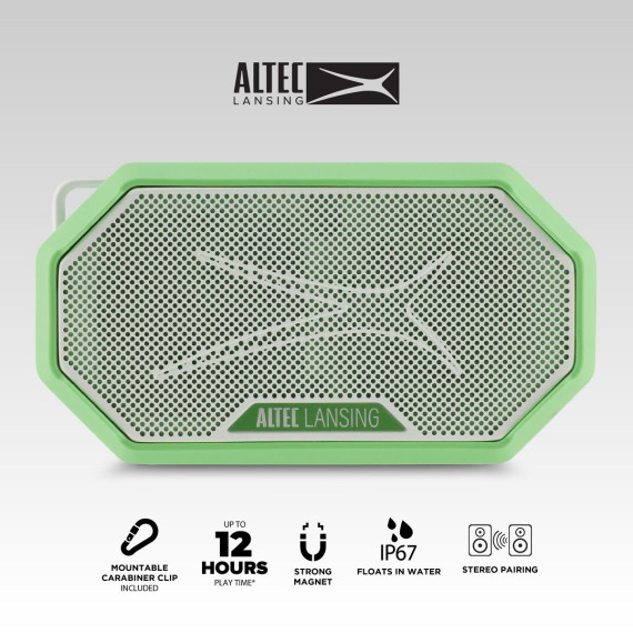 Experience unparalleled audio quality wherever you go with the ALTEC LANSING HYDRAMINI 2.0 Portable Bluetooth Speaker. Engineered as a part of the HYDRAMINI series, this magnetic Bluetooth speaker boasts an impressive 8W RMS output power and 2" Neo full-range drivers, ensuring every note is delivered with precision and clarity. Designed to accompany you on all your adventures, this waterproof Bluetooth speaker comes with an IP67 rating and more than that is also Sandproof, Snowproof, and Shockproof. Its floating capability allows it to stay afloat in water, making it an ideal companion for poolside parties or beach outings. Never worry about running out of battery with the HYDRAMINI 2.0. Equipped with a 400mAh battery, it offers an extended playtime of up to 12 hours on a single charge, now 30% larger than its predecessor. Additionally, the USB-C quick charge feature allows you to recharge your speaker in just 3 hours, ensuring you're always ready to go. Enjoy seamless connectivity with Bluetooth wireless technology, allowing you to stream music from up to 100ft away. Take your listening experience to the next level with true wireless pairing, enabling you to connect two Hydra speakers Bluetooth wireless for an immersive stereo soundstage. The ALTEC LANSING HYDRAMINI 2.0 also features convenient extras such as a carabiner clip for easy portability on your outdoor adventures and voice assistant integration, allowing you to control your speaker with simple voice commands to Siri or Google Assistant. Plus, its magnetic base lets you stick it to any metal surface for added versatility. With its robust construction and advanced features, the HYDRAMINI 2.0 Bluetooth speakers wireless are the perfect companion for music lovers who refuse to compromise on sound quality, durability, and convenience.