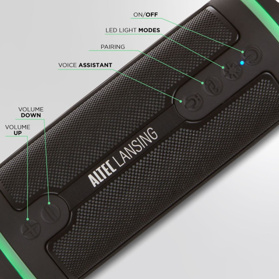 Altec Lansing HydraMotion 2.0 Bluetooth Speaker - Waterproof, 12W, 16H Battery, RGB Lights, USB-C, Voice Assistant