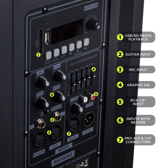 and 1 x Mic./Guitar inputs, you can easily connect microphones or instruments for