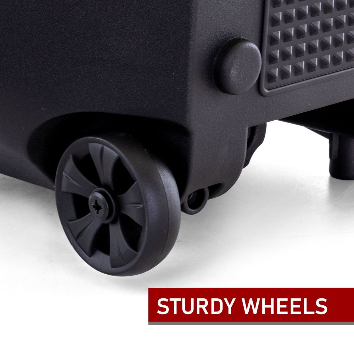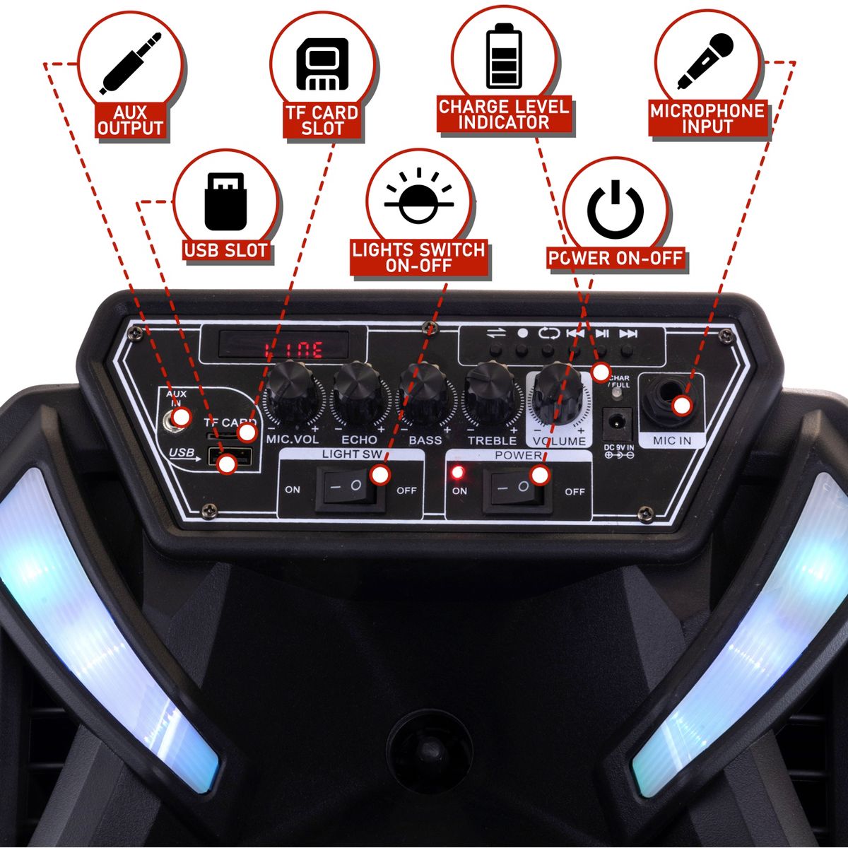 Take the party anywhere with the beFree Sound 12"" BT Portable Rechargeable Party Speaker! This 10 lbs. party speaker is fully mobile with rolling wheels and a carrying handle for easy transportation. Not only is this speaker mobile, but this system comes complete with sound reactive lights, USB/TF compatibility, a remote control, and an FM radio for an all in one party experience! Includes: Party Speaker Power Cord Remote Control Owner's Manual