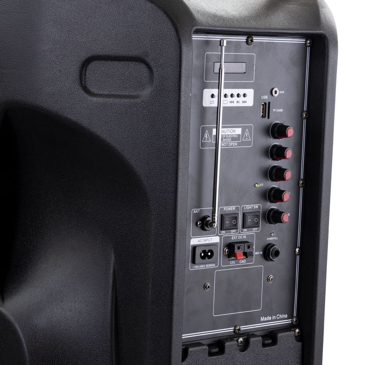 This beFree Sound multipurpose Bluetooth Portable PA Speaker is designed with 1500 WattsPower P.M.P.O, bringing more power and sound to your event. This speaker features a 12V Rechargeable Battery and AC UL Adapter. Play, Pause, Rewind, Fast Forward, Shuffle, Repeat and Record Features are also located on the back of the Speaker.