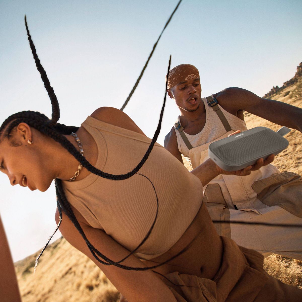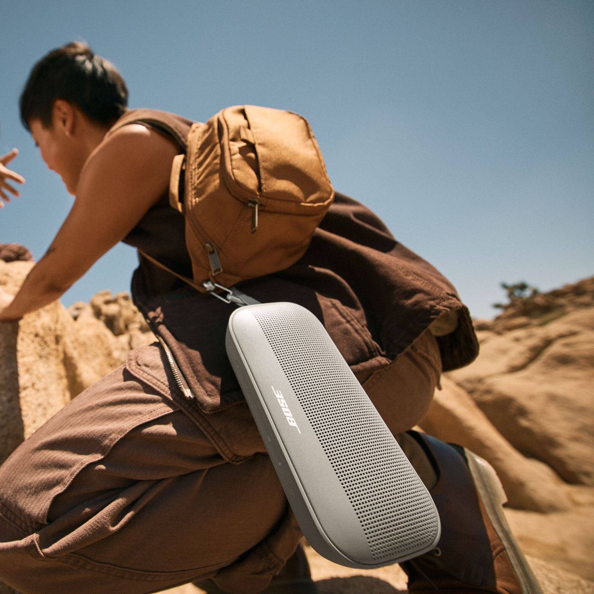 Press play and go further with the Bose SoundLink Flex Portable Speaker (2nd Gen). With surprisingly big, bold sound in a super-packable size, it’s perfect for sharing tunes and good times anywhere on the planet. It’s built durable, too, so you can go wherever the beat takes you. High-fidelity audio and deep bass for a Bluetooth speaker this size make it loud enough to fill the space wherever you are on your journey. It’s perfectly portable, too. Small enough to fit in your hand, throw in your pack, or clip to the outside with the nylon sport utility loop. And you’ll keep the dance party going into the night with up to 12 hours of battery life.* Rigorously tested to meet an IP67 rating, SoundLink Flex is waterproof and dustproof. It even floats, so a quick dip in the pool won’t sink your sound. Just grab it and get back to the fun. The wireless speaker can also withstand drops, crushing, shocks, and rust.