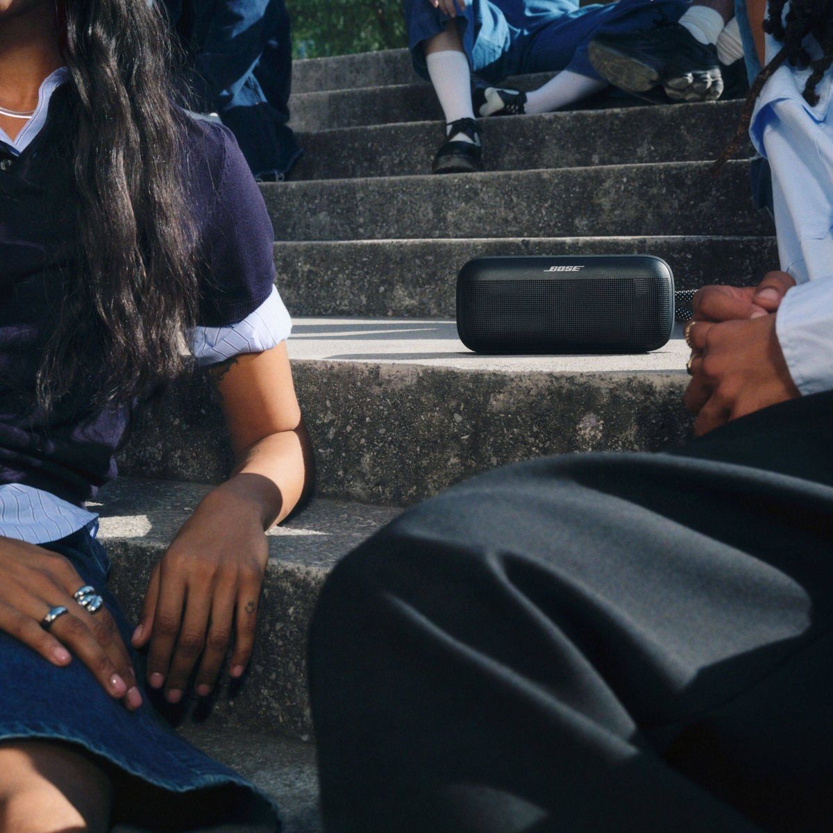 Plus up the energy in any group hang with the Bose SoundLink Plus Speaker. Its bold, resonant audio livens any moment as soon as you hit play. Big enough to bring the bass while being portable enough to take anywhere. Designed to amplify the moment, this portable speaker comes equipped with a carrying loop so you’re always ready for spontaneous listening. Its ready-for-anything exterior protects it from all weather, tumbles, and falls. Up to 20 hours2 of battery power means you’ll stay prepped to play the moment for as long as it lasts. Charge your phone by plugging directly into the SoundLink Plus’ USB-C port to keep your tunes (and the moment) going.
