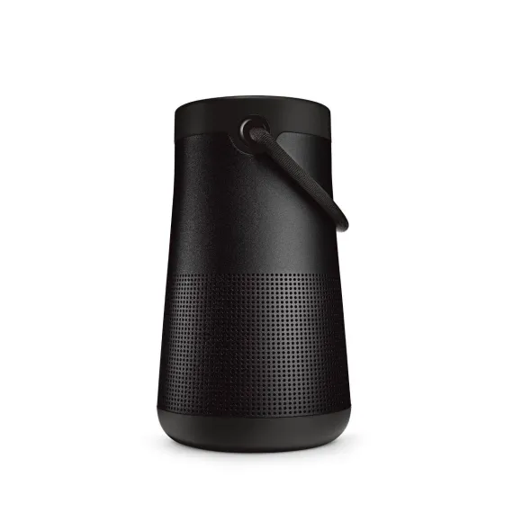 The Bose SoundLink Revolve Plus II Portable Bluetooth Speaker is engineered to spread deep, jaw-dropping sound in every direction. Place it in the center of the room to give everyone the same experience. Or set it near a wall and sound will radiate and reflect around the room, immersing you in that same feeling you felt at your favorite show. The tapered cylindrical shape with a flexible handle makes this wireless speaker easy to grab and go, while a durable aluminum body provides worry-free protection. Great for indoor or outdoor use, with a rechargeable, lithium-ion battery that plays up to 17 hours. And it’s water resistant so you can keep the party going, even if it starts to rain. Voice prompts talk you through Bluetooth pairing, and there’s a built-in speakerphone for calls. Use Bose SimpleSync ™ technology to sync your Bose SoundLink Revolve Plus II to other Bluetooth speakers and headphones around the house. Keep the party going, no matter the room, at the press and hold of a button. Available in Triple Black or Luxe Silver.