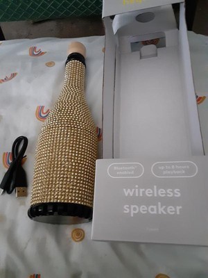 Such a cute little speaker! I’ve gotten so many compliments every time someone sees on my counter. When you turn on it does a champagne bottle popping noise which adds to the fun. It has a good sound quality for the price!