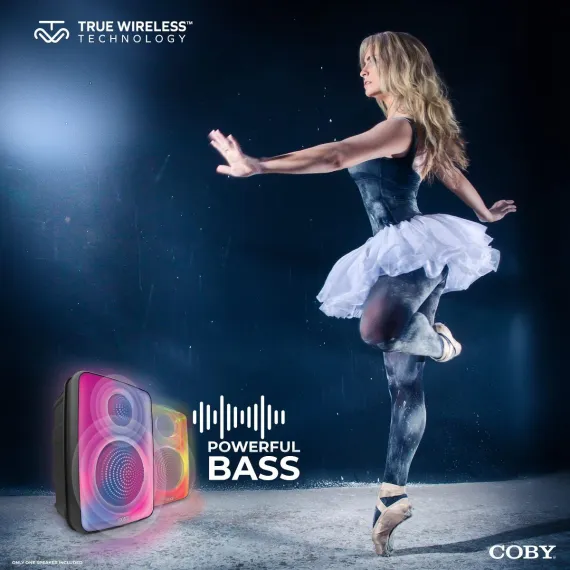 - Party Ready and Truly Wireless: Spectra's compact size (11.6-inches) and powerful multi-media features make it a slammin' party engine you can take with you, and even pair with another Coby true wireless speaker. Bluetooth connectivity lets you play back music from your device up to 30 feet away.