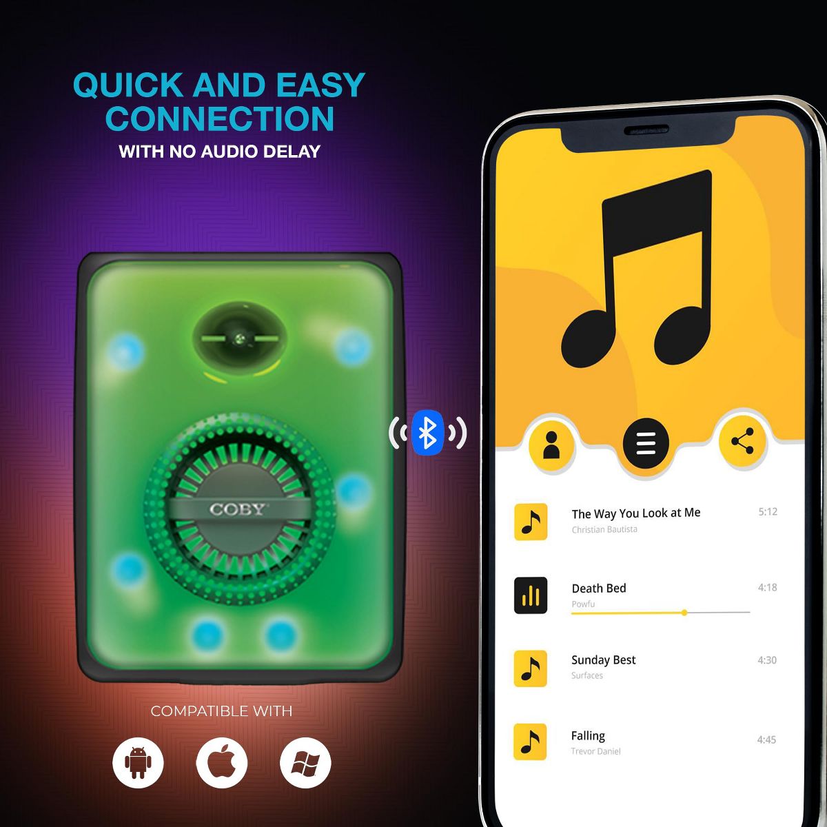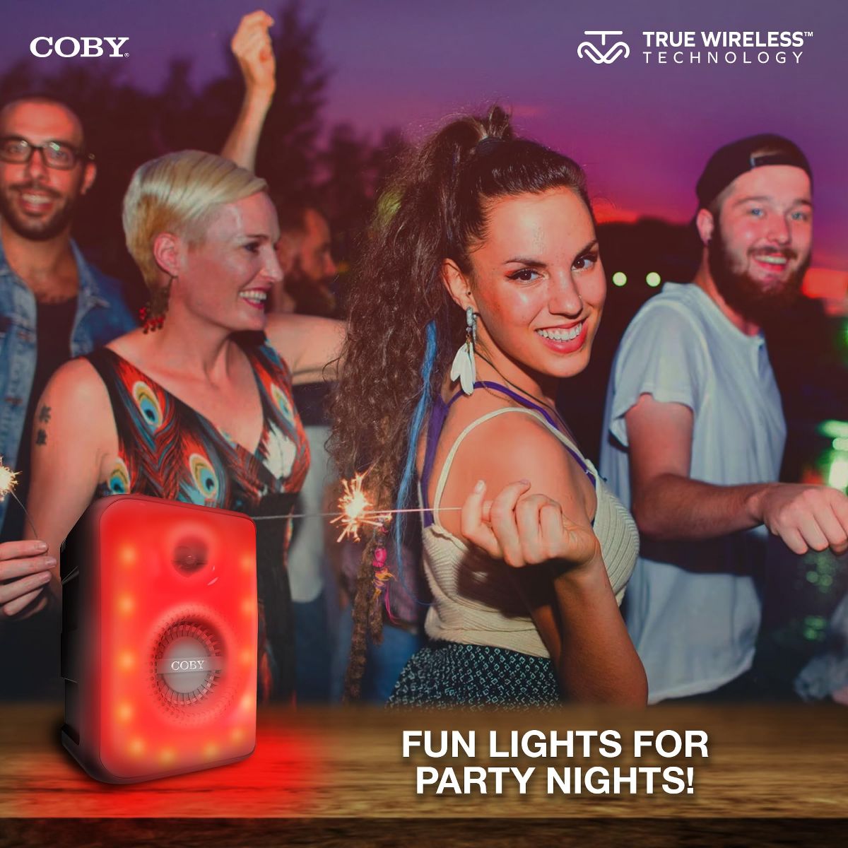 • BLUETOOTH 5.3 ' Seamlessly stream from your smart device with wireless Bluetooth technology. Up your party game and experience True Wireless Pairing, which lets you stream your music to 2 separate Coby True Wireless Bluetooth Speakers acting as left and right audio channels for immersive stereo sound.
