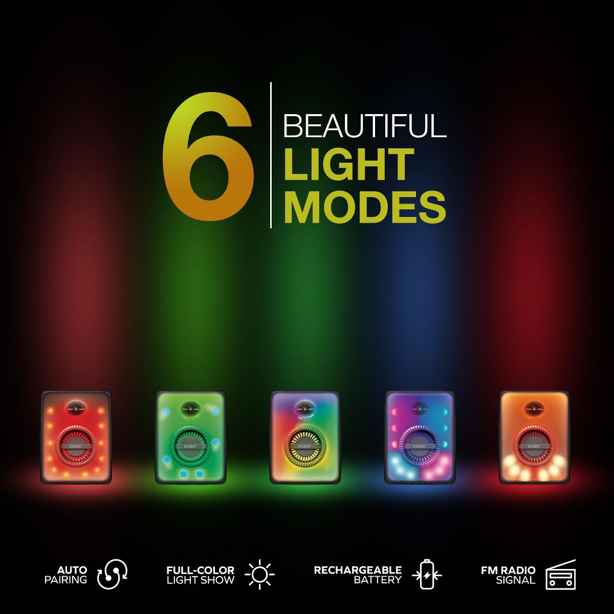 • 6 LIGHTSHOW MODES ' Accentuate your music and get the party started with 6 vivid lightshow modes. Infuse your space with mesmerizing multicolor ambience as vibrant hues dance and pulse to the music. Impress your friends with an unforgettable party atmosphere.